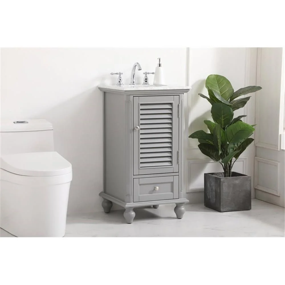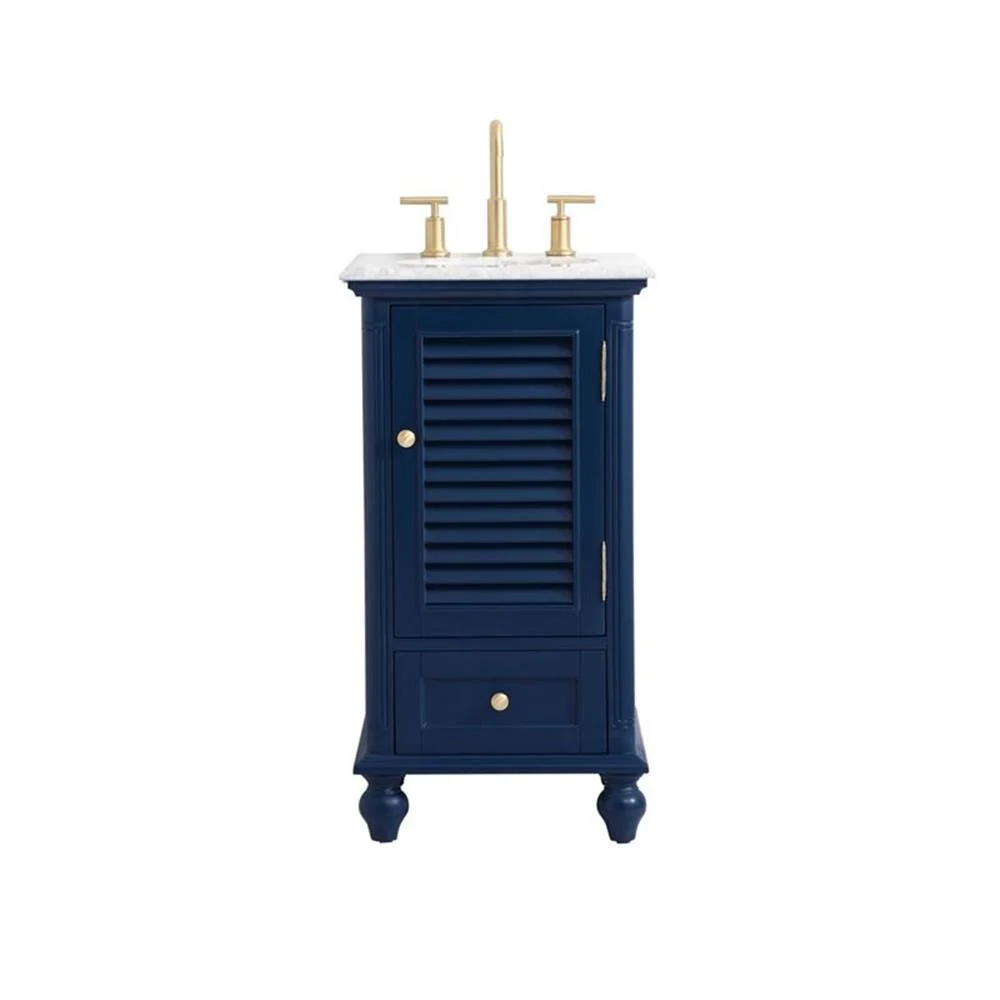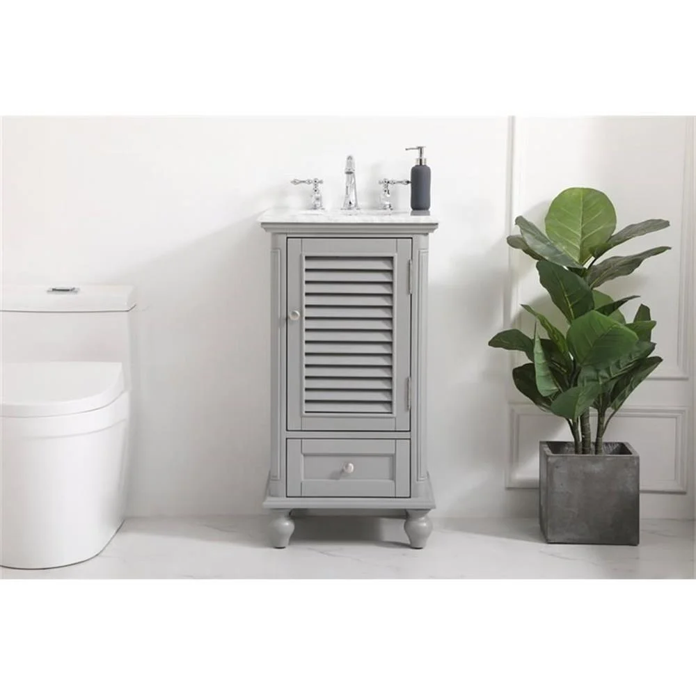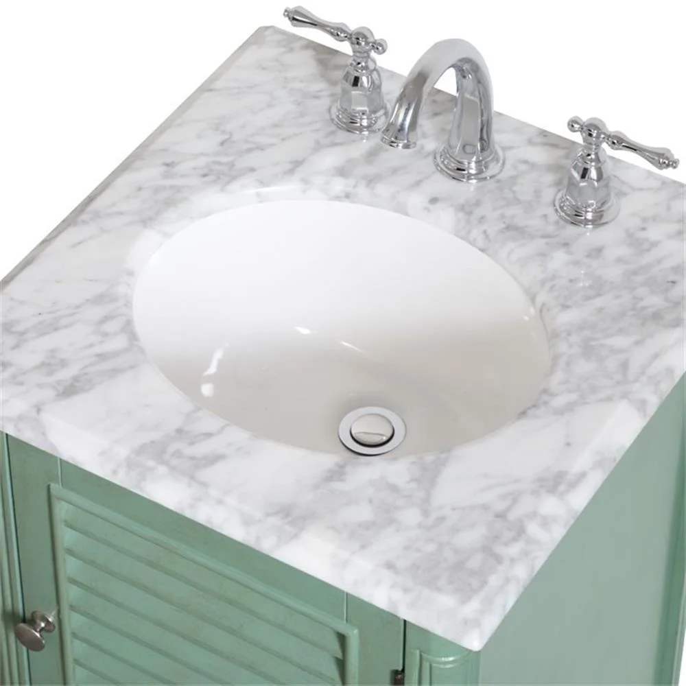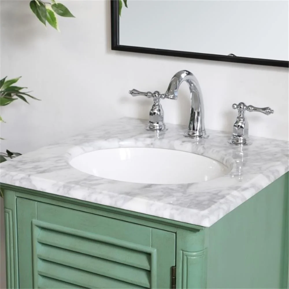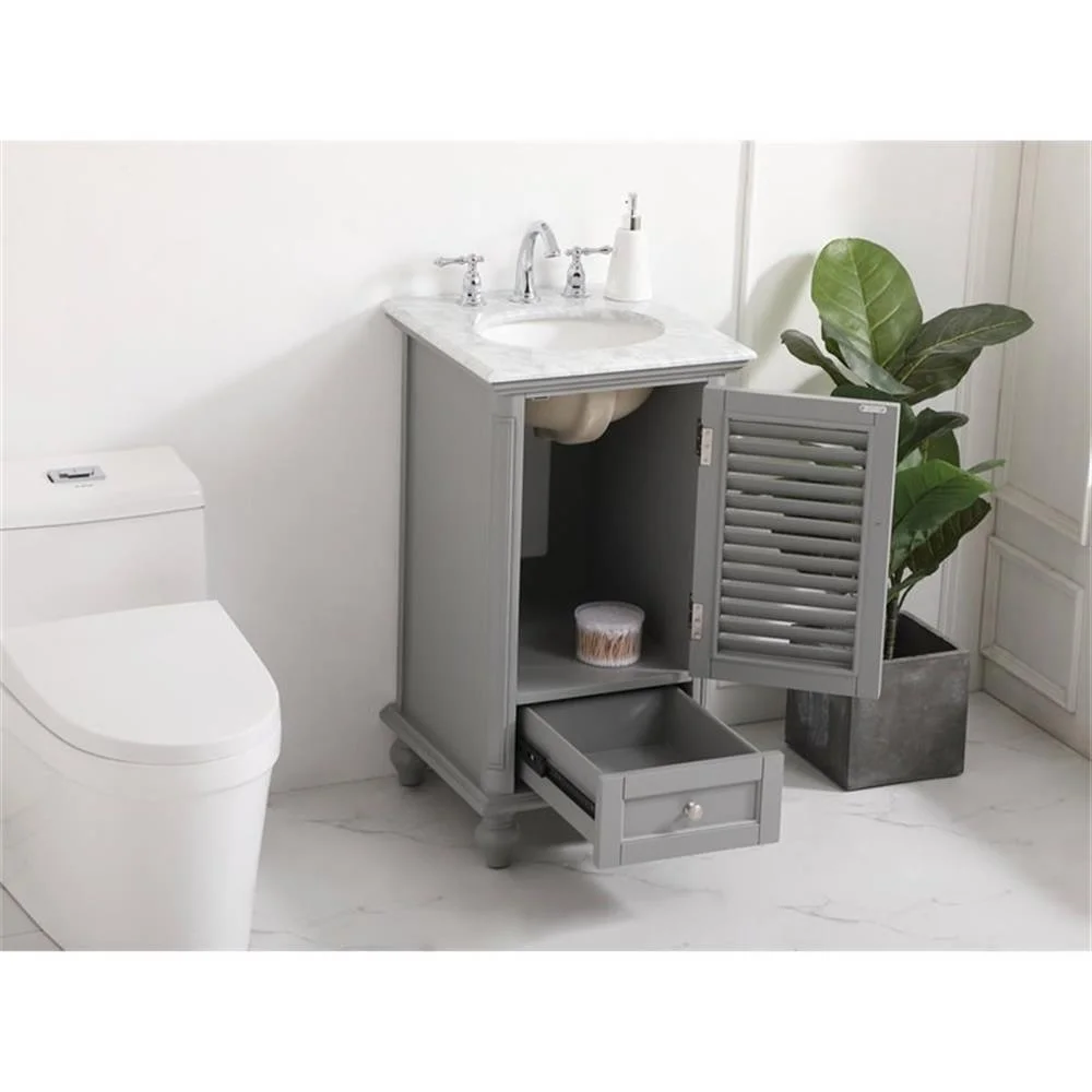 A small space doesn't mean you have to settle for less. The Rhodes collection compact vanity will add lovely sophistication and complement any small bathroom or powder room, while utilizing its charm and function to provide you with ample storage spaces. Metal round knobs gently adorn the shuttered cabinet door and drawer at the base, allowing for you to store away your bathroom essentials. The Carrara white marble countertop, porcelain undermount sink, dignified subtle engravings on the side edges, and rounded legs all come together to create contemporary beauty. Work with your space, and design a beautiful room, no matter the size.