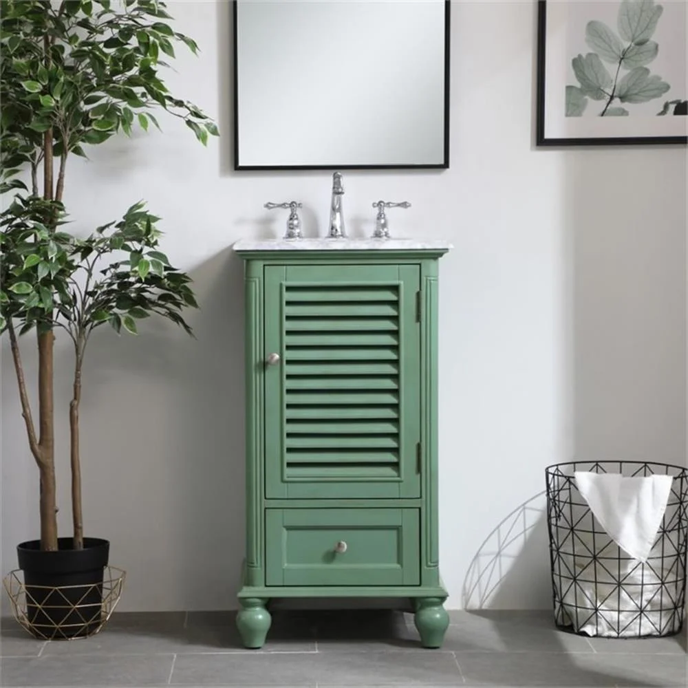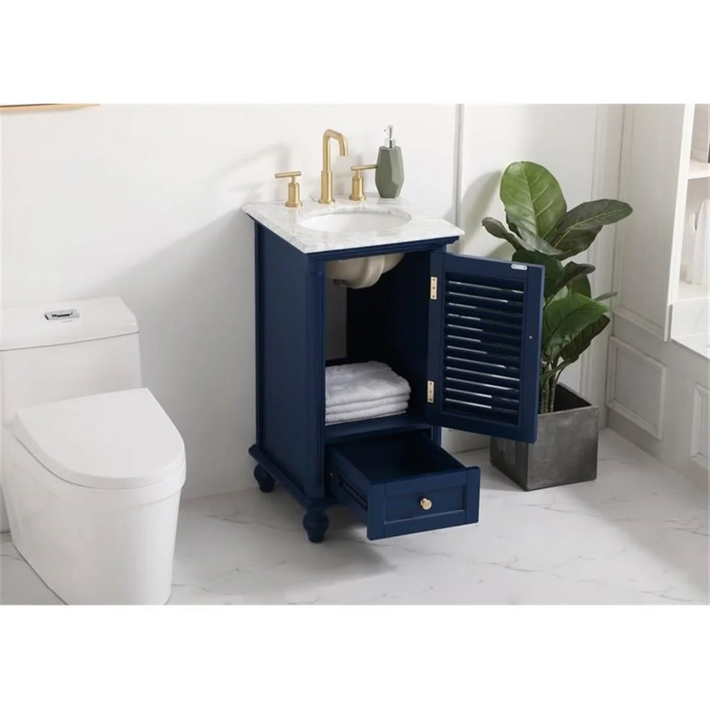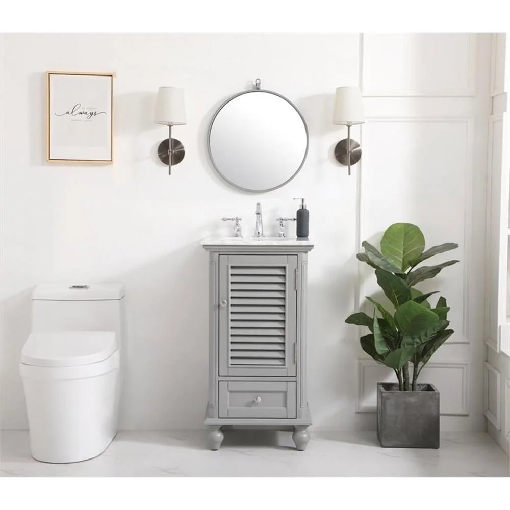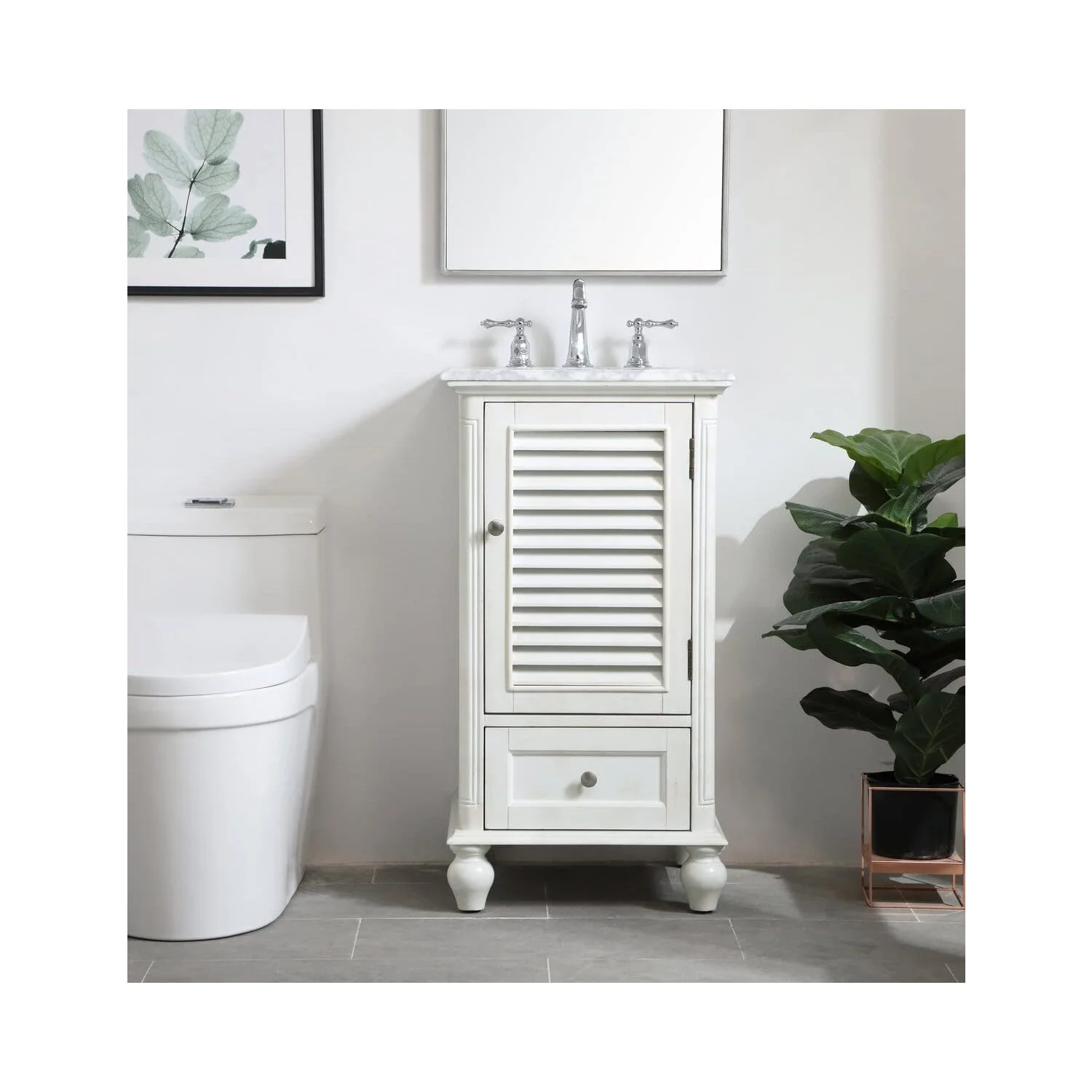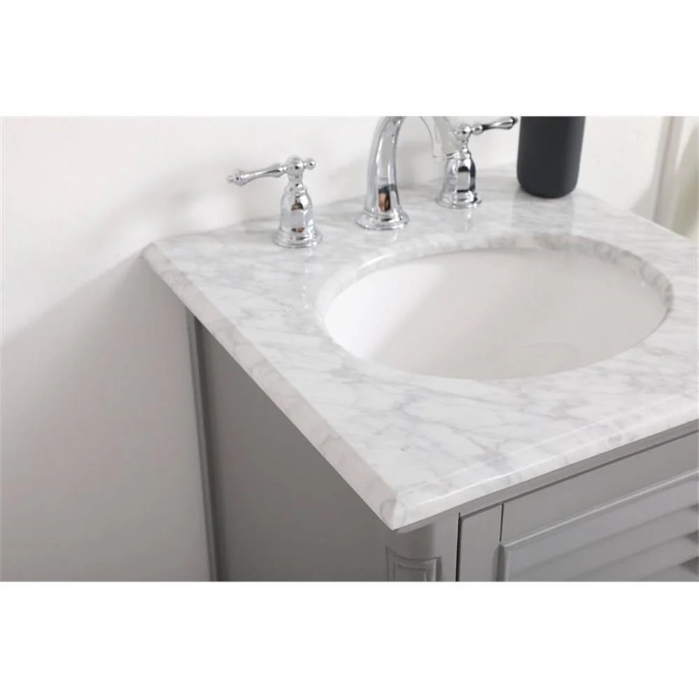 A small space doesn't mean you have to settle for less. The Rhodes collection compact vanity will add lovely sophistication and complement any small bathroom or powder room, while utilizing its charm and function to provide you with ample storage spaces. Metal round knobs gently adorn the shuttered cabinet door and drawer at the base, allowing for you to store away your bathroom essentials. The Carrara white marble countertop, porcelain undermount sink, dignified subtle engravings on the side edges, and rounded legs all come together to create contemporary beauty. Work with your space, and design a beautiful room, no matter the size.