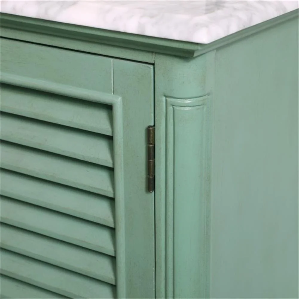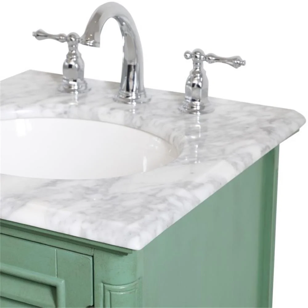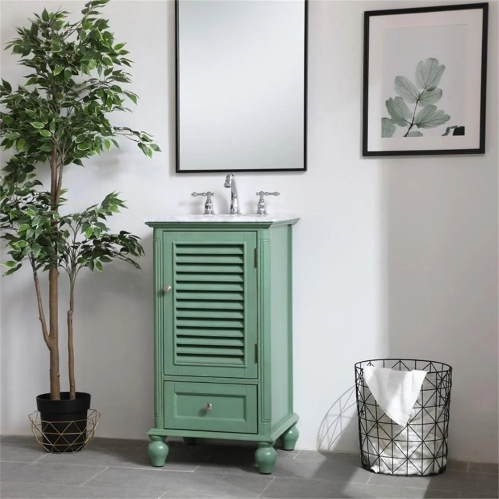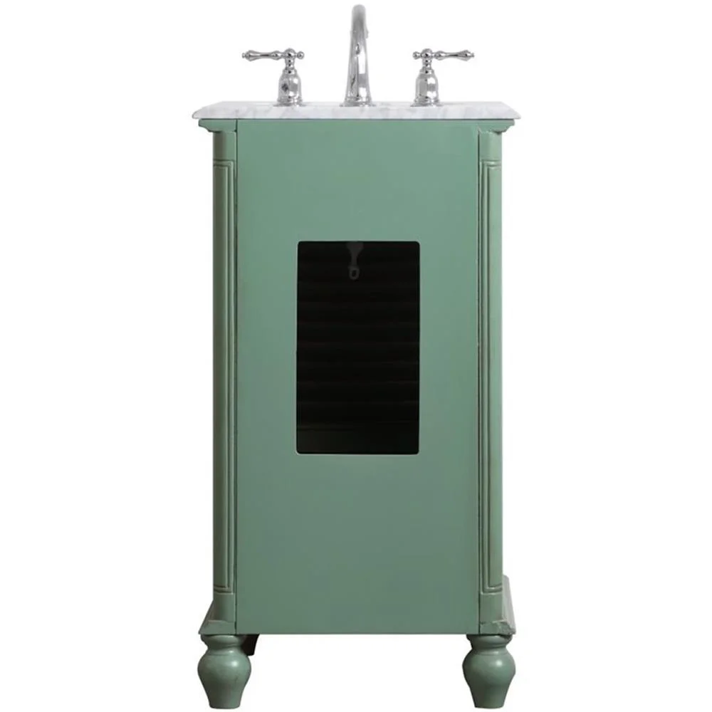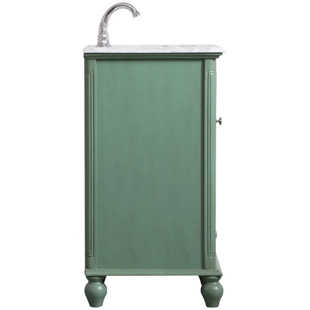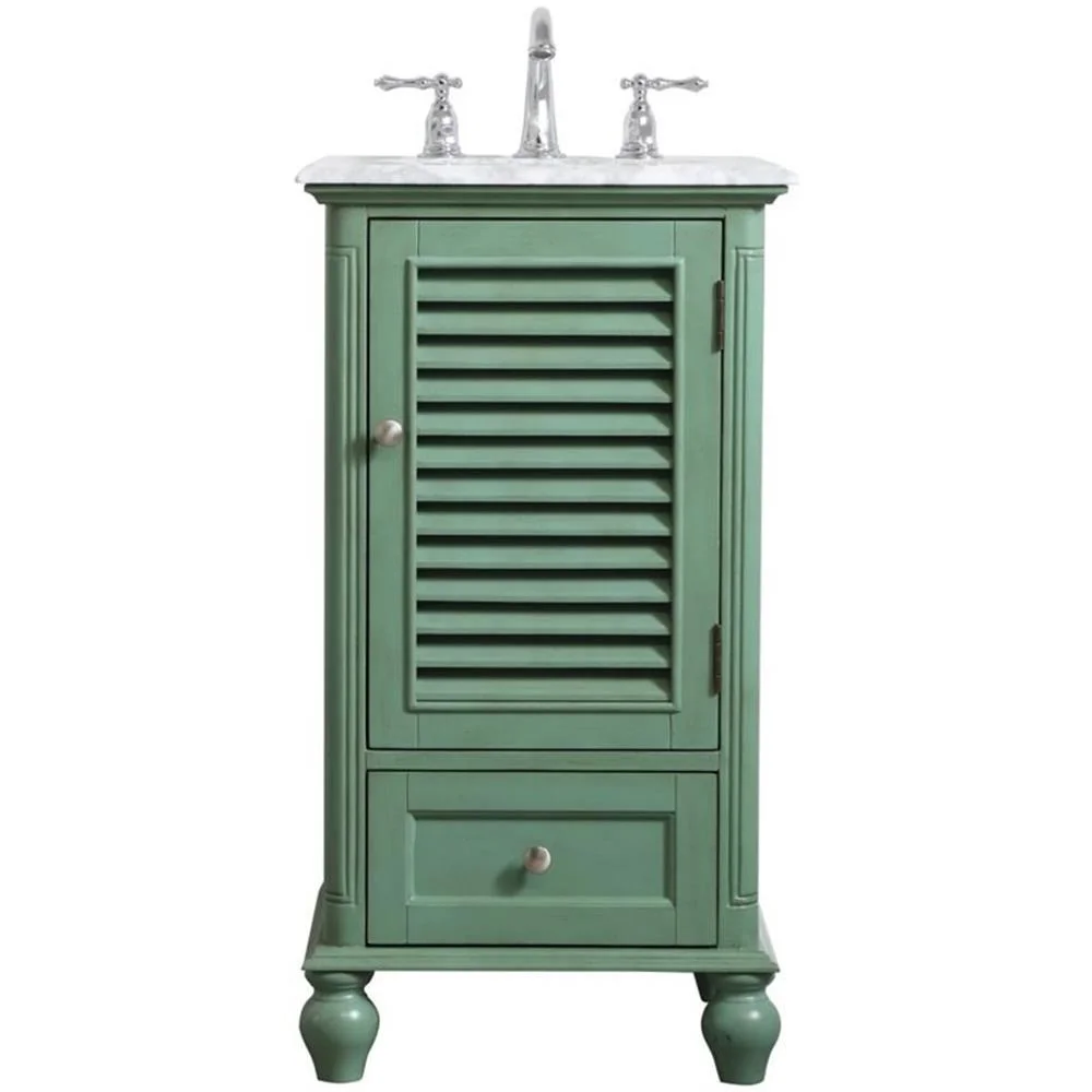 A small space doesn't mean you have to settle for less. The Rhodes collection compact vanity will add lovely sophistication and complement any small bathroom or powder room, while utilizing its charm and function to provide you with ample storage spaces. Metal round knobs gently adorn the shuttered cabinet door and drawer at the base, allowing for you to store away your bathroom essentials. The Carrara white marble countertop, porcelain undermount sink, dignified subtle engravings on the side edges, and rounded legs all come together to create contemporary beauty. Work with your space, and design a beautiful room, no matter the size.