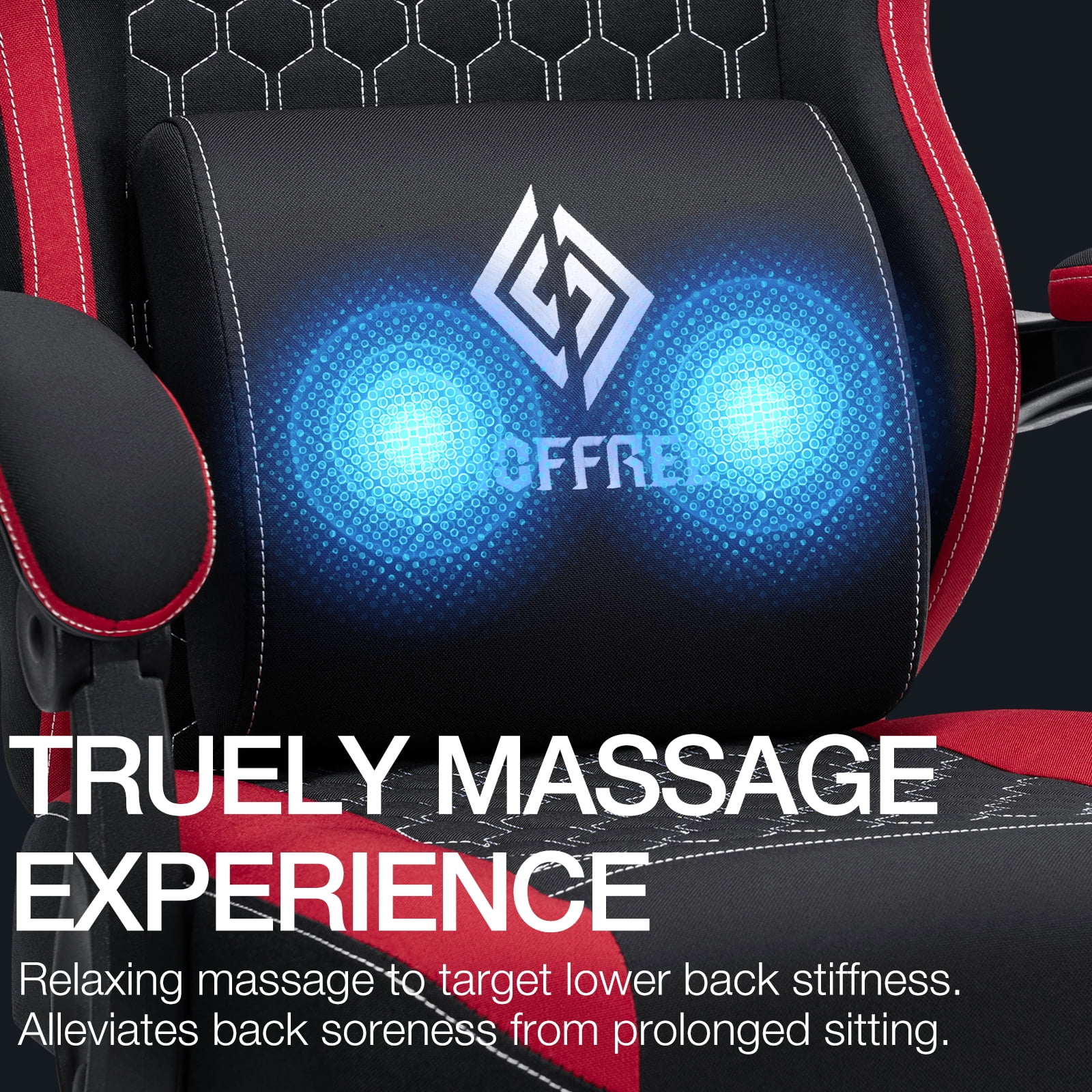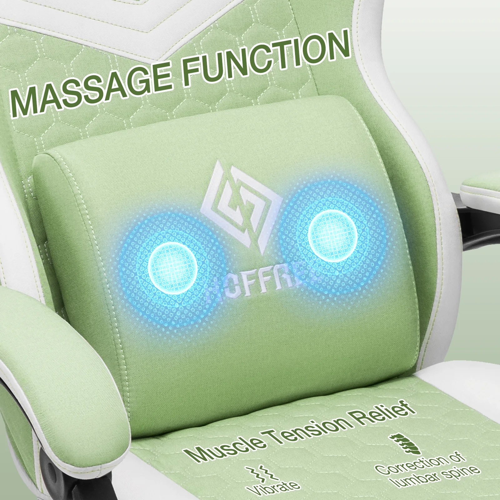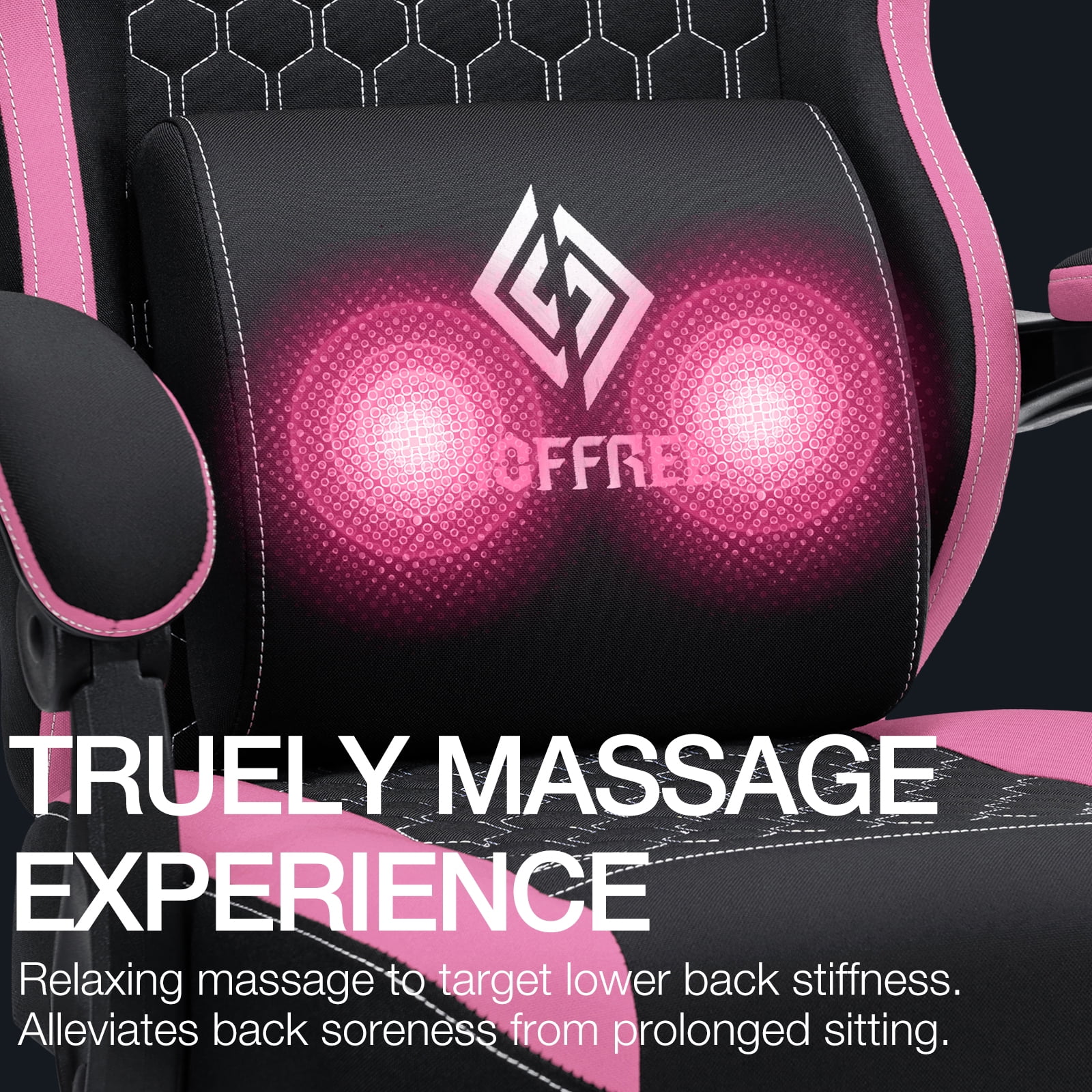 The built-in two-point vibration massage in the lumbar cushion of the gaming chair provides targeted relief to the lower back, helping reduce muscle tension and improve posture during long gaming or work.