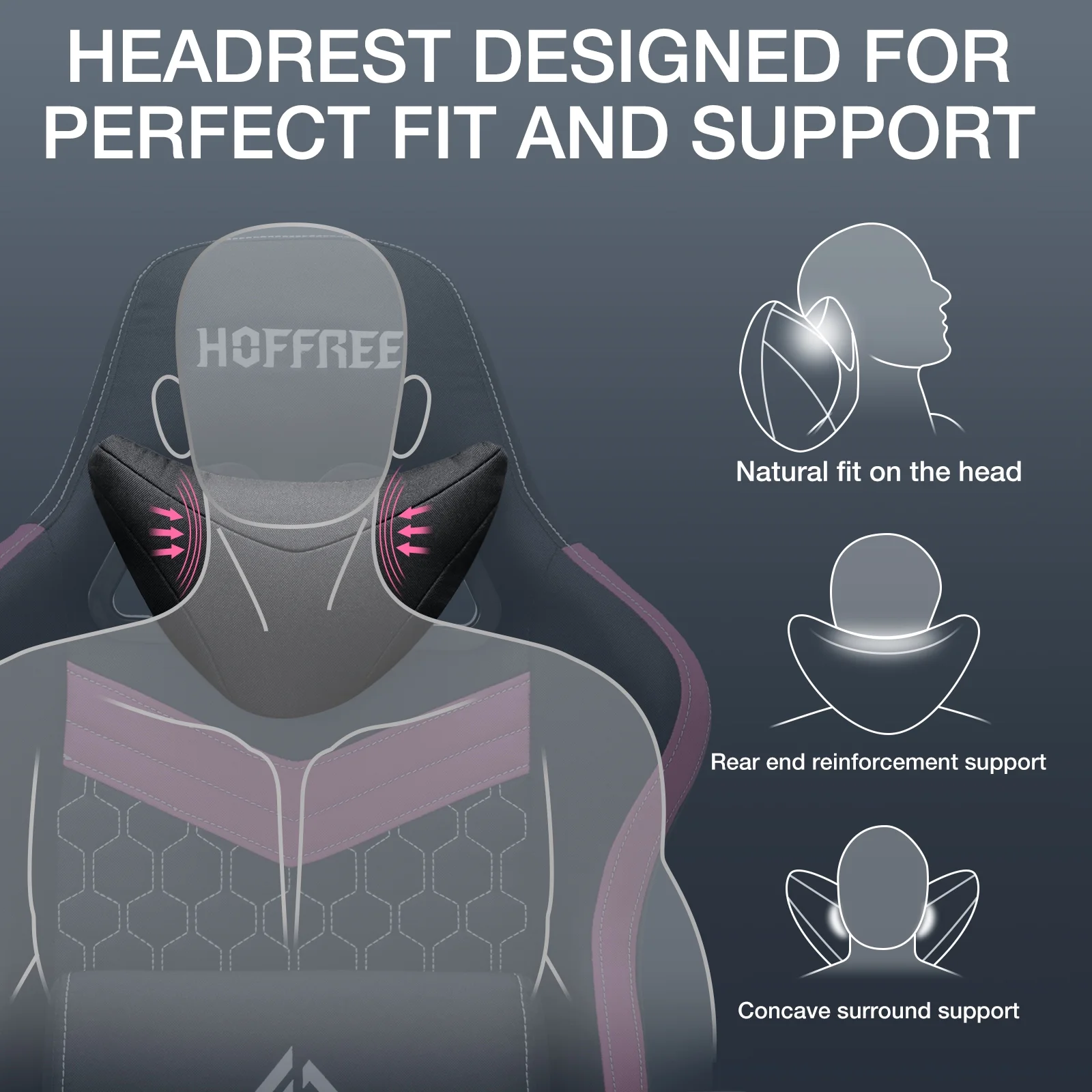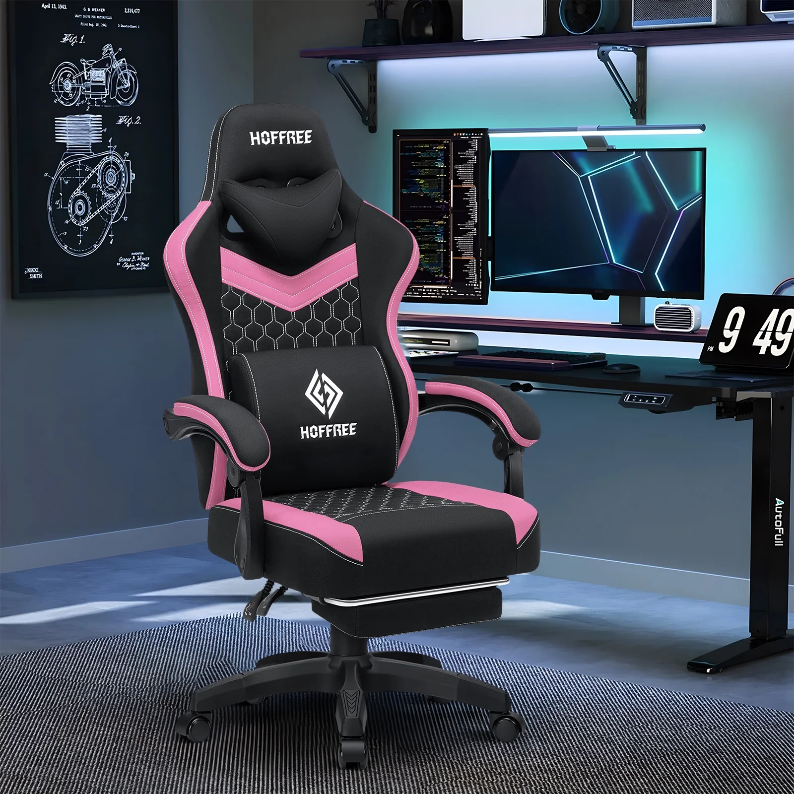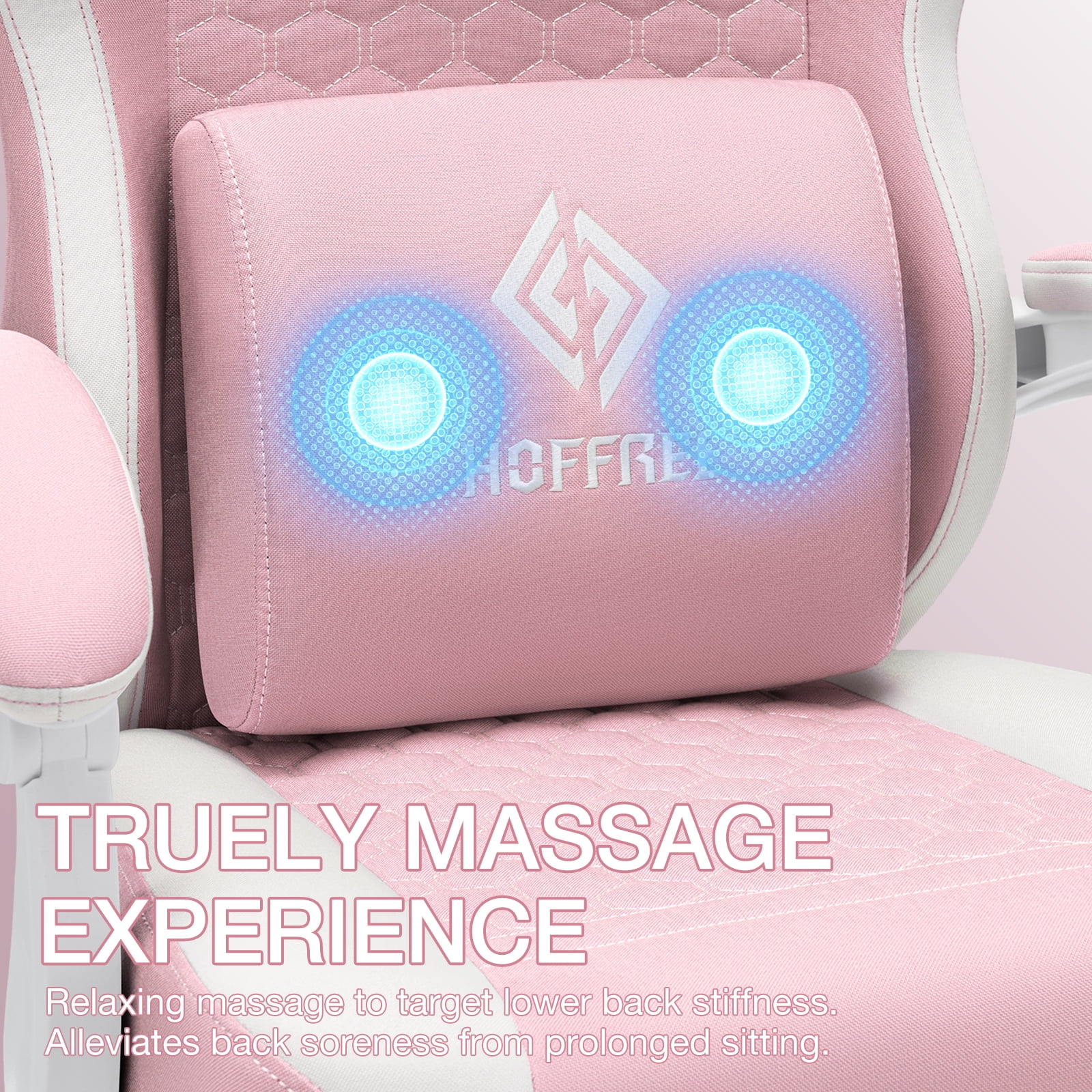 The built-in two-point vibration massage in the lumbar cushion of the gaming chair provides targeted relief to the lower back, helping reduce muscle tension and improve posture during long gaming or work.