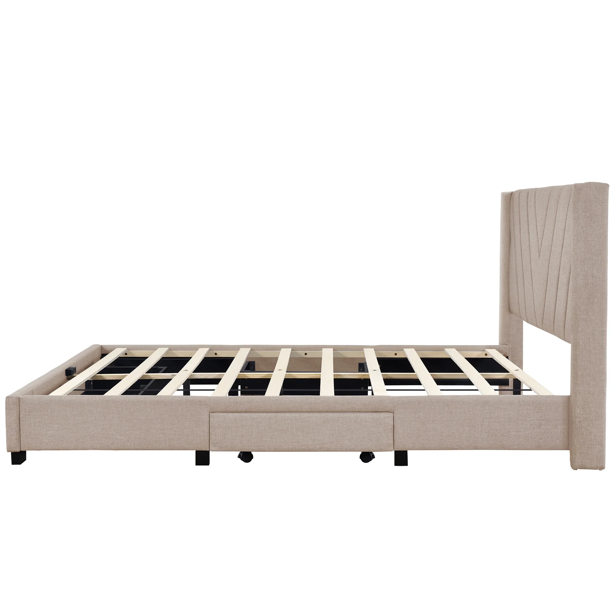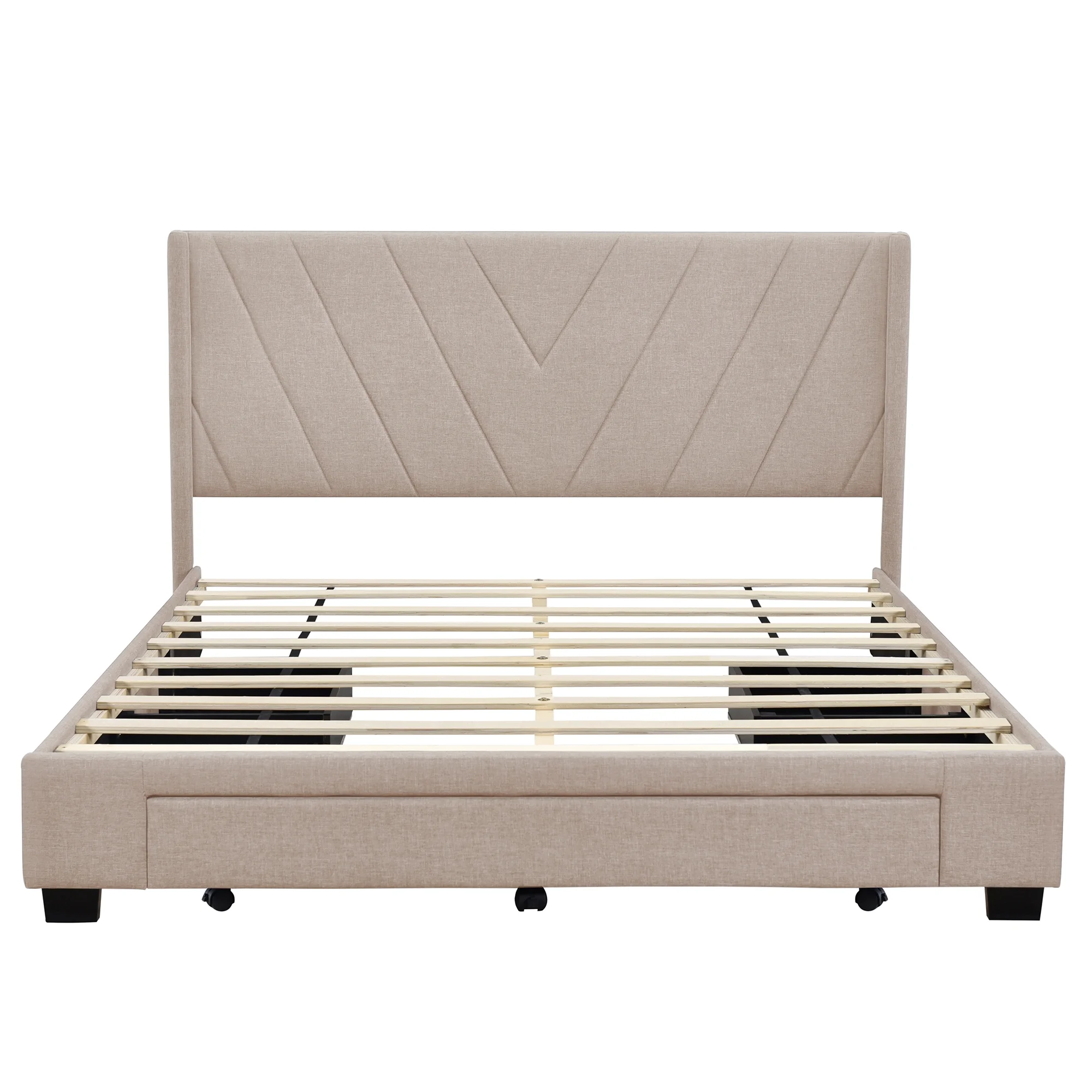 Sesslife Queen Bed Frame with Storage, New Upgraded Linen Upholstered Platform Bed with 3 Drawers, Queen Size Storage Bed with Headboard and Wooden Slats, No Box Spring Needed, Holds 500 lb, Beige