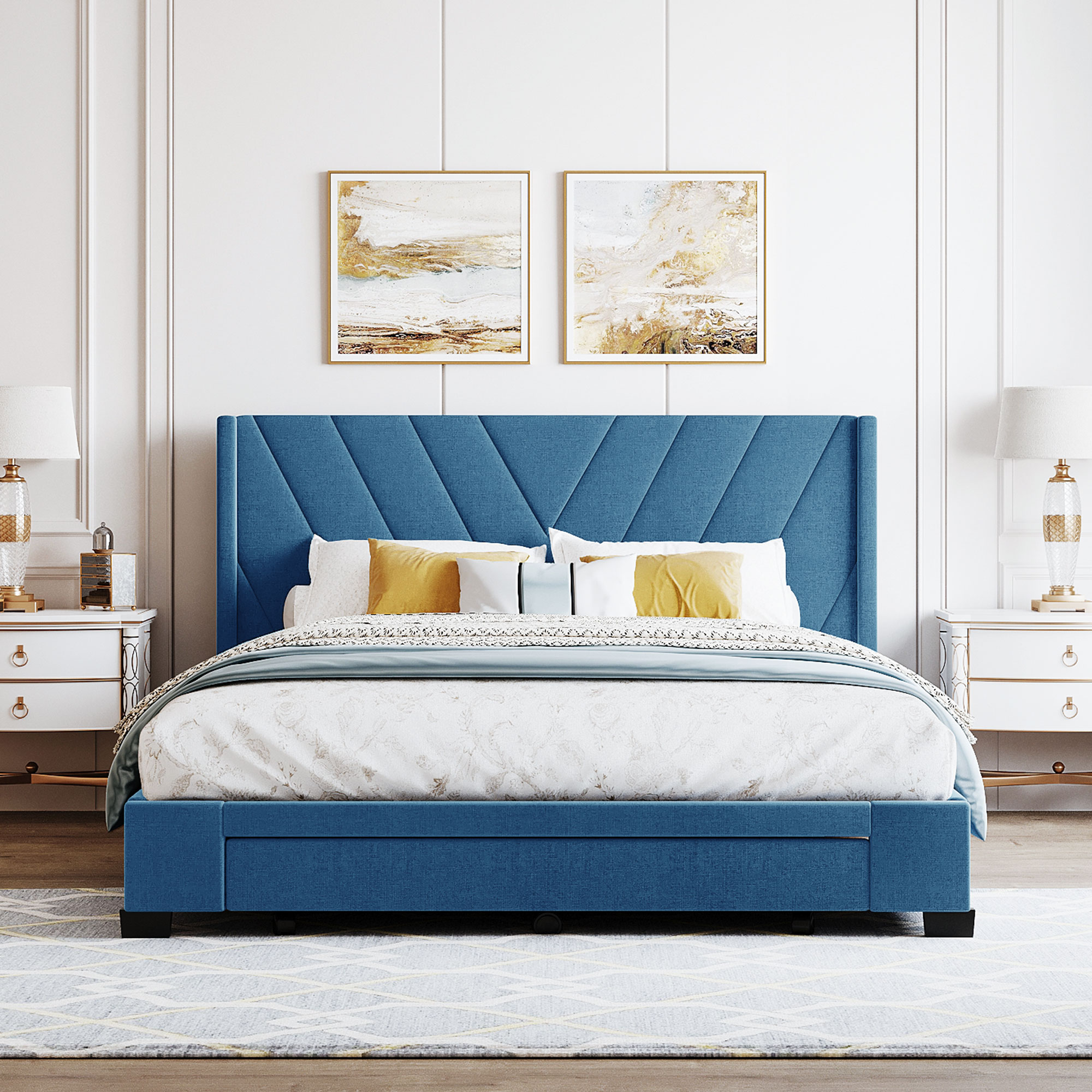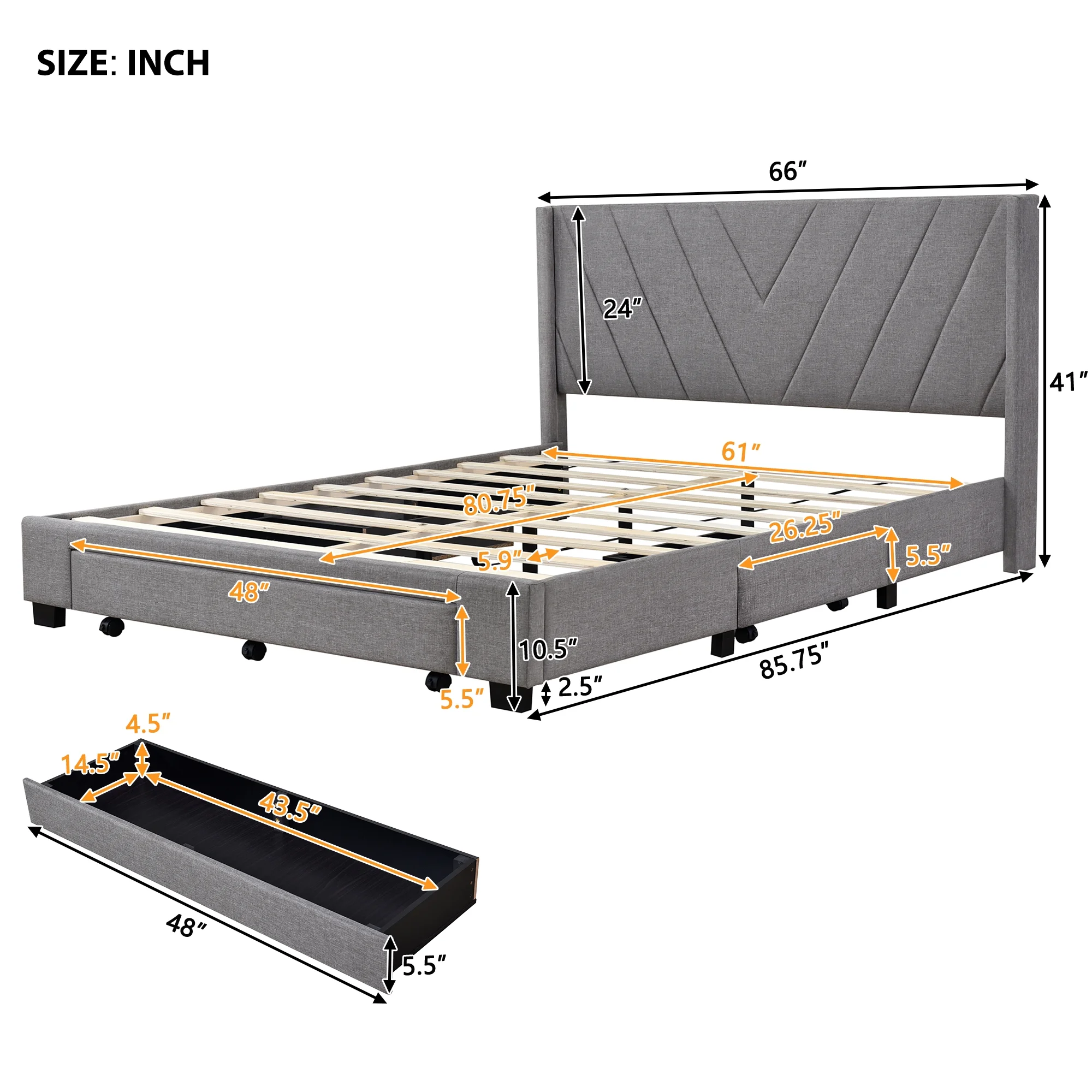 The platform bed frame with storage combines the functions of storage and a bed. Comes with 3 large drawers equipped with smooth casters, this platform bed is ideal for keeping your bedroom necessities such as bed sheets, pillows, or blankets clean and tidy.