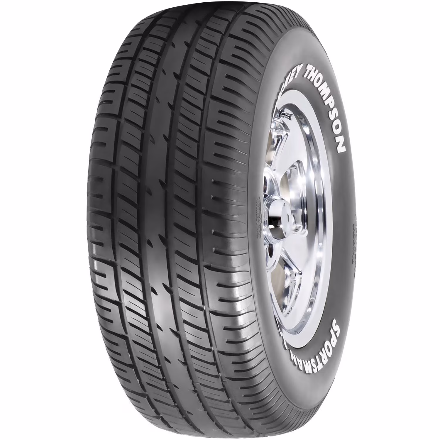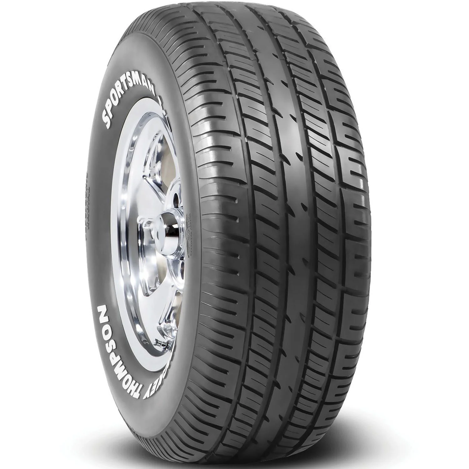 Get period-correct looks with modern-day design, performance, and reliability for your muscle car with the Sportsman S/T Radial tire from Mickey Thompson. The Sportsman S/T Radial features a solid center rib for enhanced steering response and stability, circumferential and lateral grooves that boost wet traction, great-looking white letter sidewall, and is available in a wide range of sizes for various fitments.