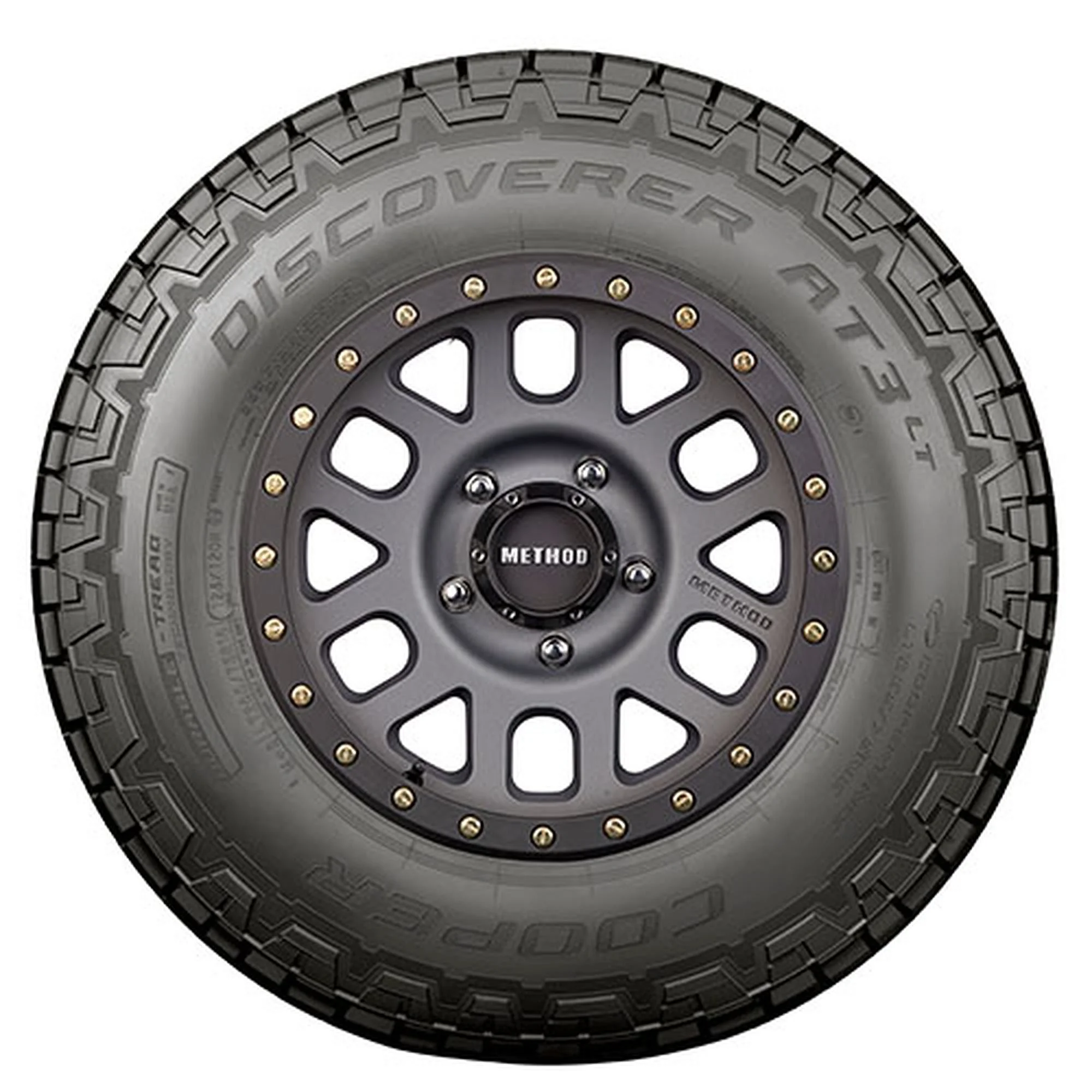 The Discoverer AT3 LT tire from Cooper is ready for the tough jobs, with enhanced load capacity, a tough, durable casing, and an aggressive off-road tread pattern. The Discoverer AT3 LT is designed with Cooper's Durable Tread technology for long wear, tough Secure-Grip tread pattern, and a tread pitch that's computer-tuned to keep road noise low. Additionally, the Discoverer AT3 LT is protected by a 60,000 mile limited manufacturer tread life.