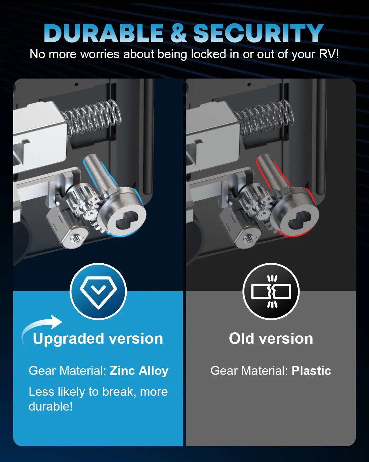 SAFE & STRONG: The RV door lock replacement is IP66 waterproof and crafted from 100% metal. It features a Grade C anti-theft and anti-pry lock cylinder to ensure optimal security performance.
