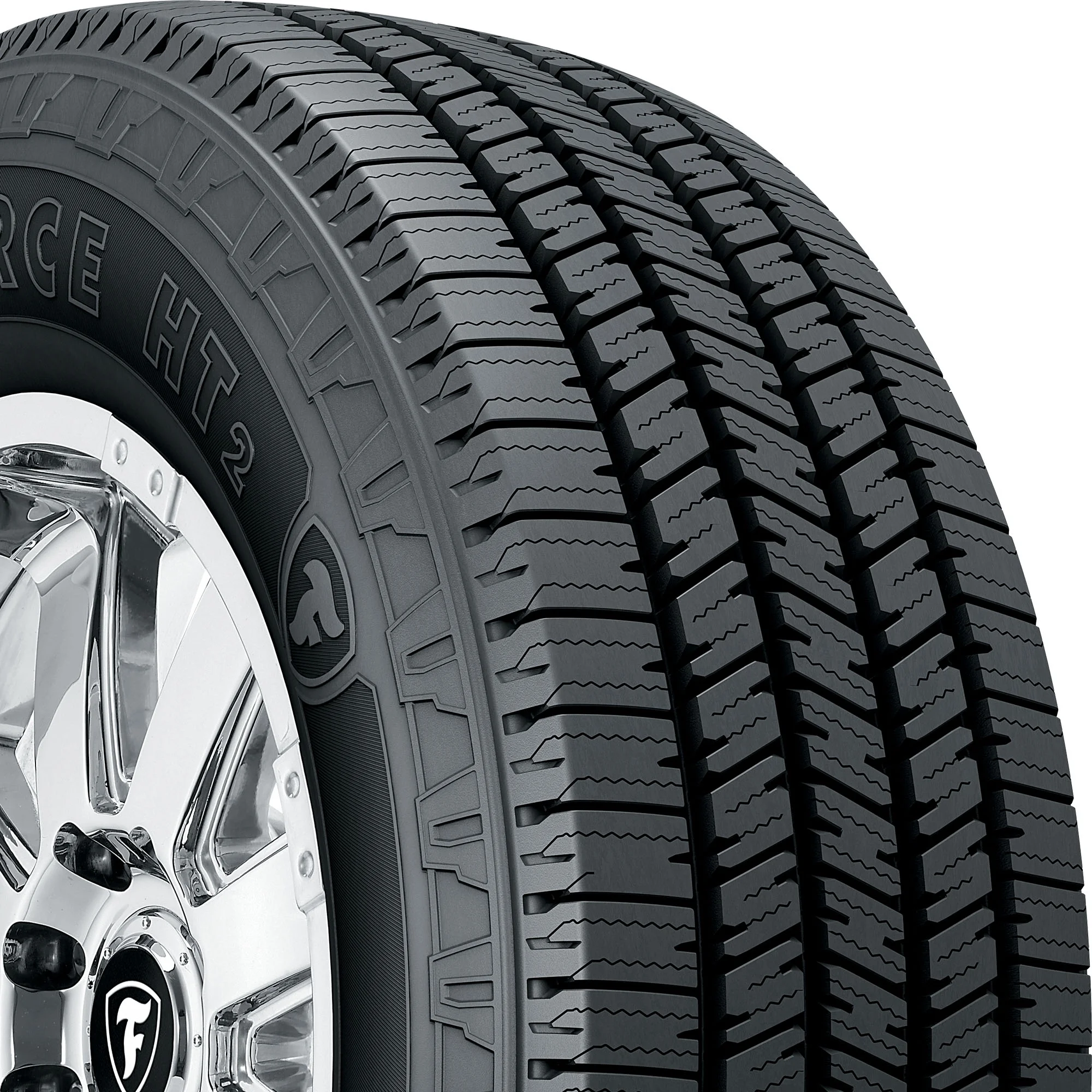 The Firestone Transforce HT2 is and all-season tire designed for use on light trucks and commercial vans and features and optimized design that increases ride comfort and fuel efficiency. and optimized design boosts strength and durability for a higher load carrying capacity and to prevent uneven wear, and the Transforce HT2's sawtooth edge siping bites into the road to increase grip on snowy roads. Wide grooves funnel water out of the tread to improve hydroplaning resistance, and the Transforce HT2's full-depth lateral sipes strengthen wet grip by biting into the road.
