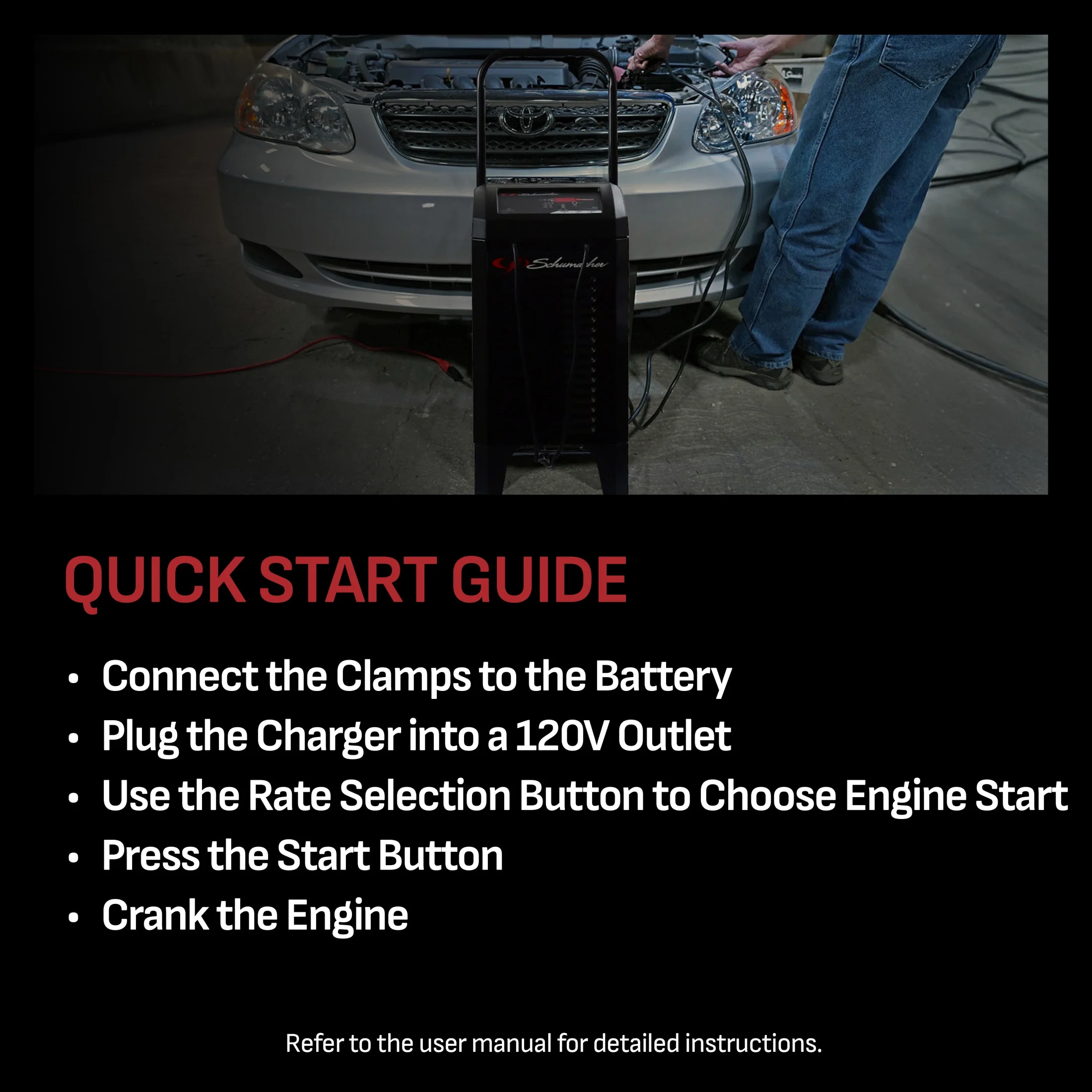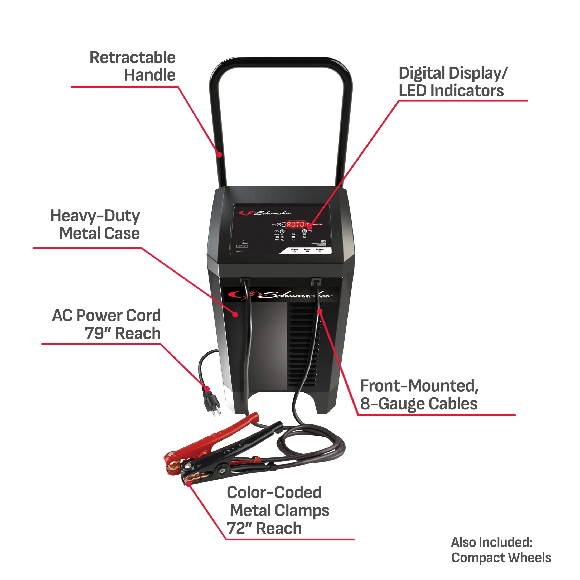 - Microprocessor controlled - automatically adjusts the amperage rate to charge and maintain