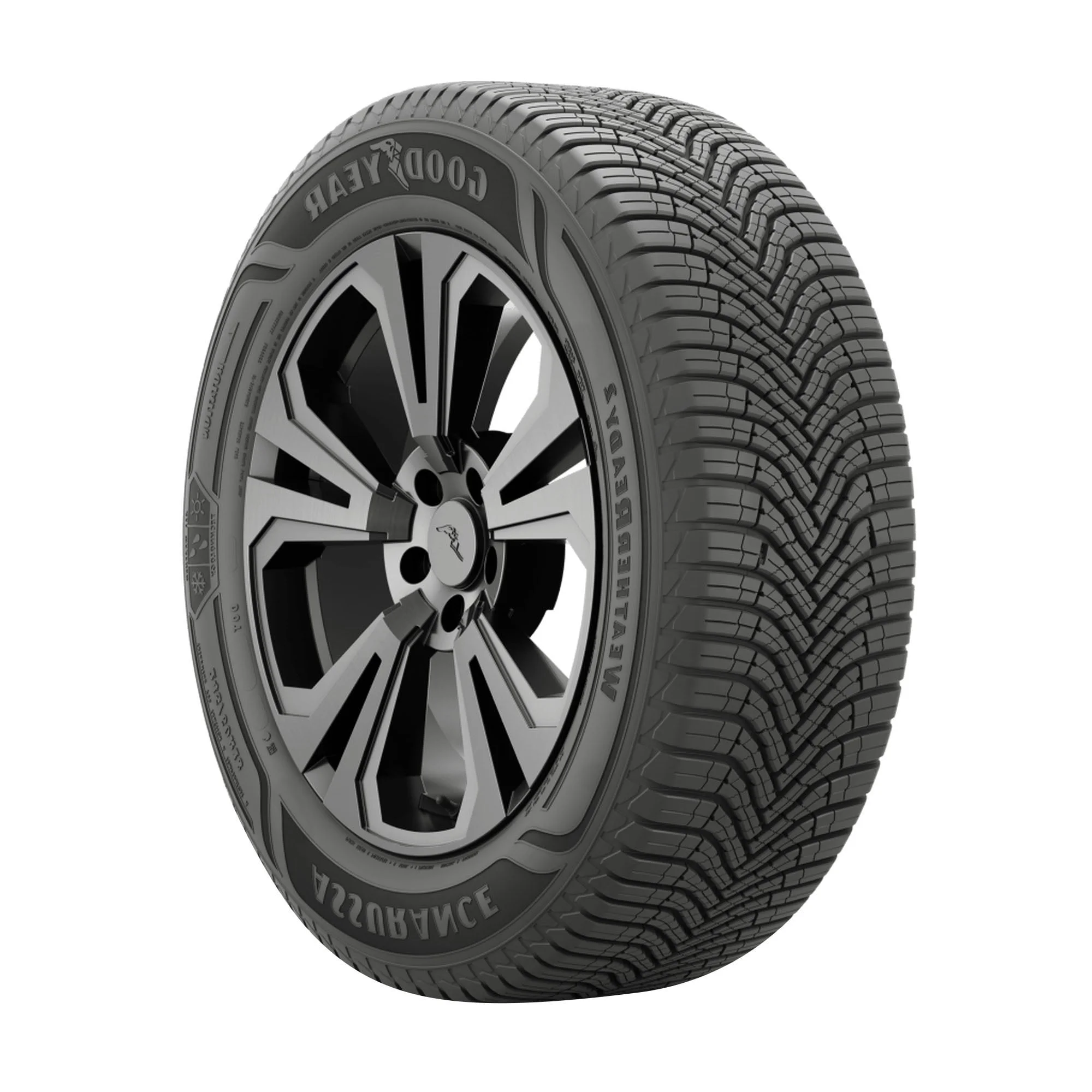 Enjoy the versatility of year-round performance with the Assurance WeatherReady 2 from Goodyear. The Assurance WeatherReady 2 has the Three Peak Mountain Snowflake rating for severe winter service, with a directional tread design and Goodyear's AquaTred technology of sweeping grooves and a dense sipe network as well as built-in wear gauges to easily keep tabs on tread wear. The Assurance WeatherReady 2 features a soybean oil-enriched rubber compound that keeps the tread flexible for traction in subfreezing weather.