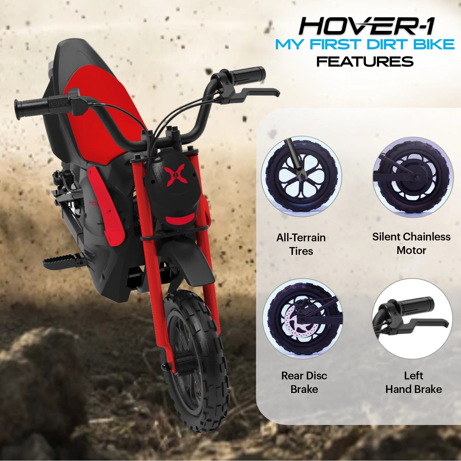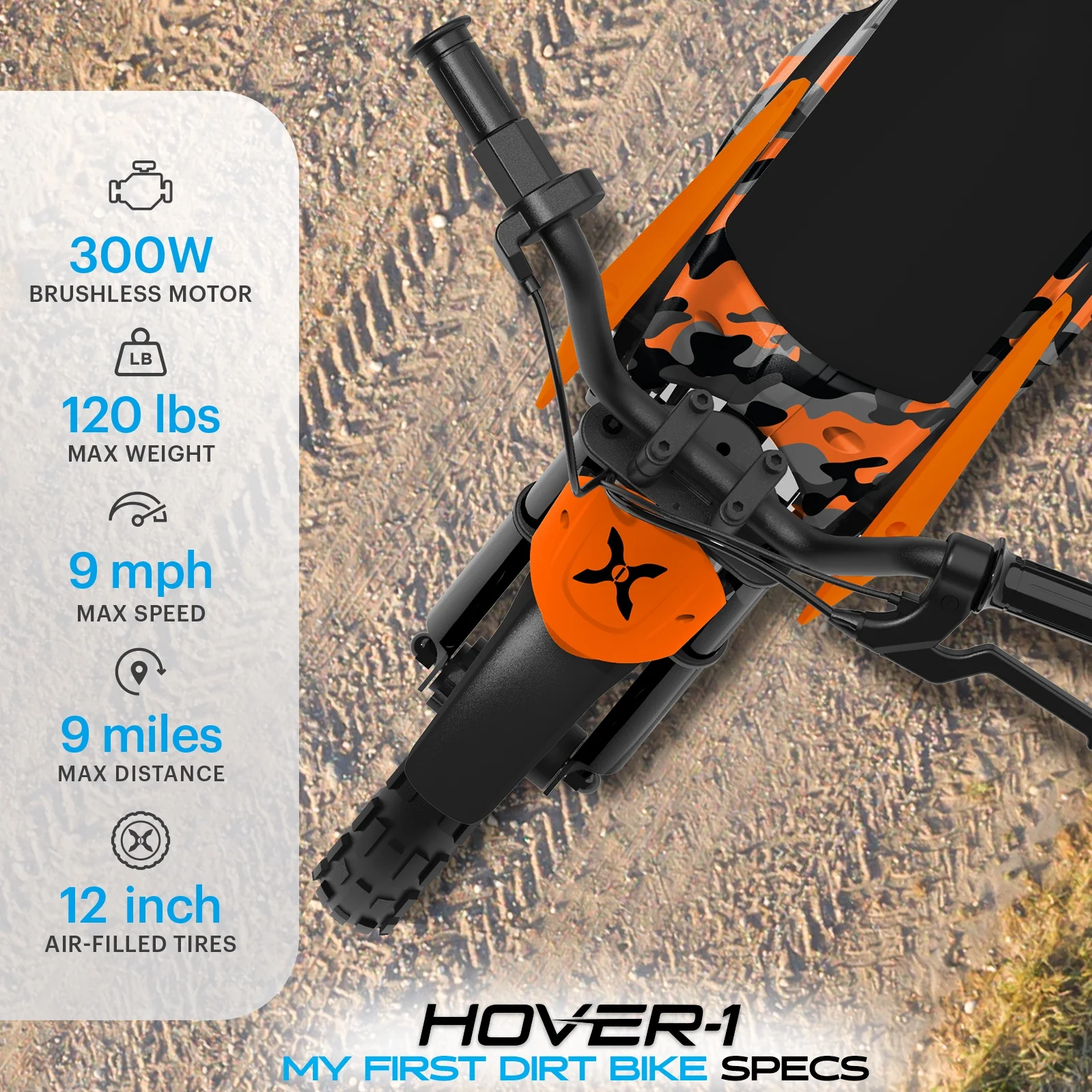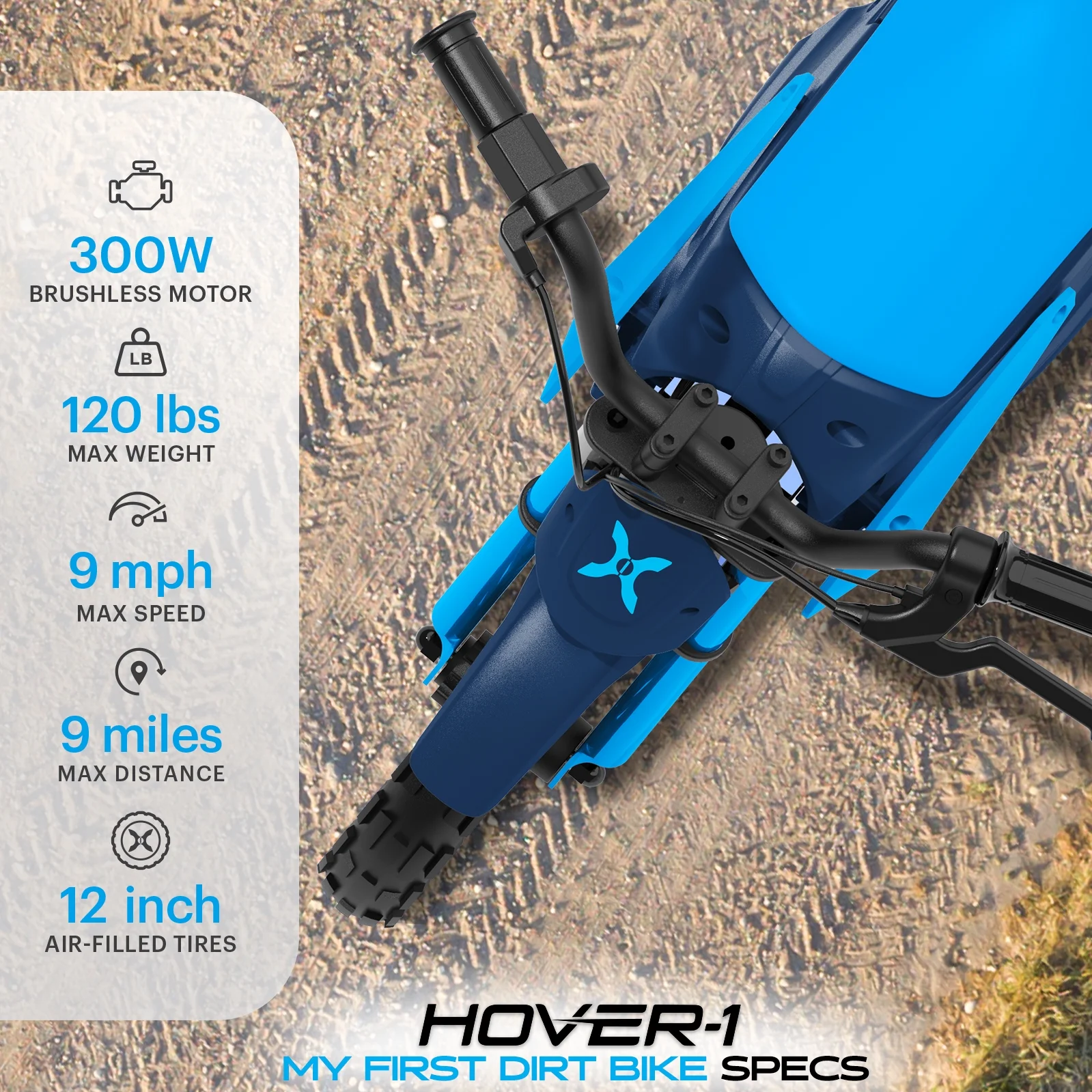 Hover - 1 My First Dirt Bike for Kids - 300W Motor, 9MPH Max Speed, 9 Mile Range, 12 Off - Road Tires, 120 lb Max Weight, Twist Grip Throttle & Rear Disc Brake Electric Dirt Bike for Kids Ages 5+ Years