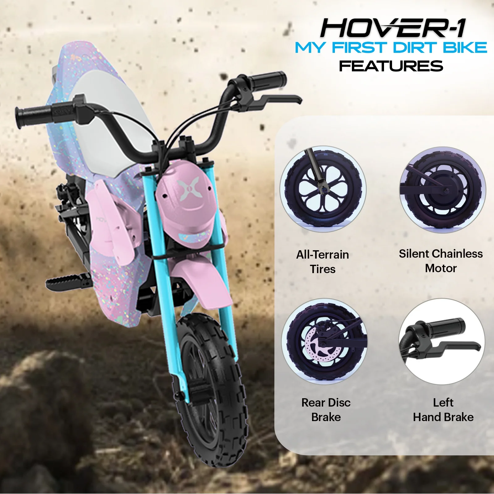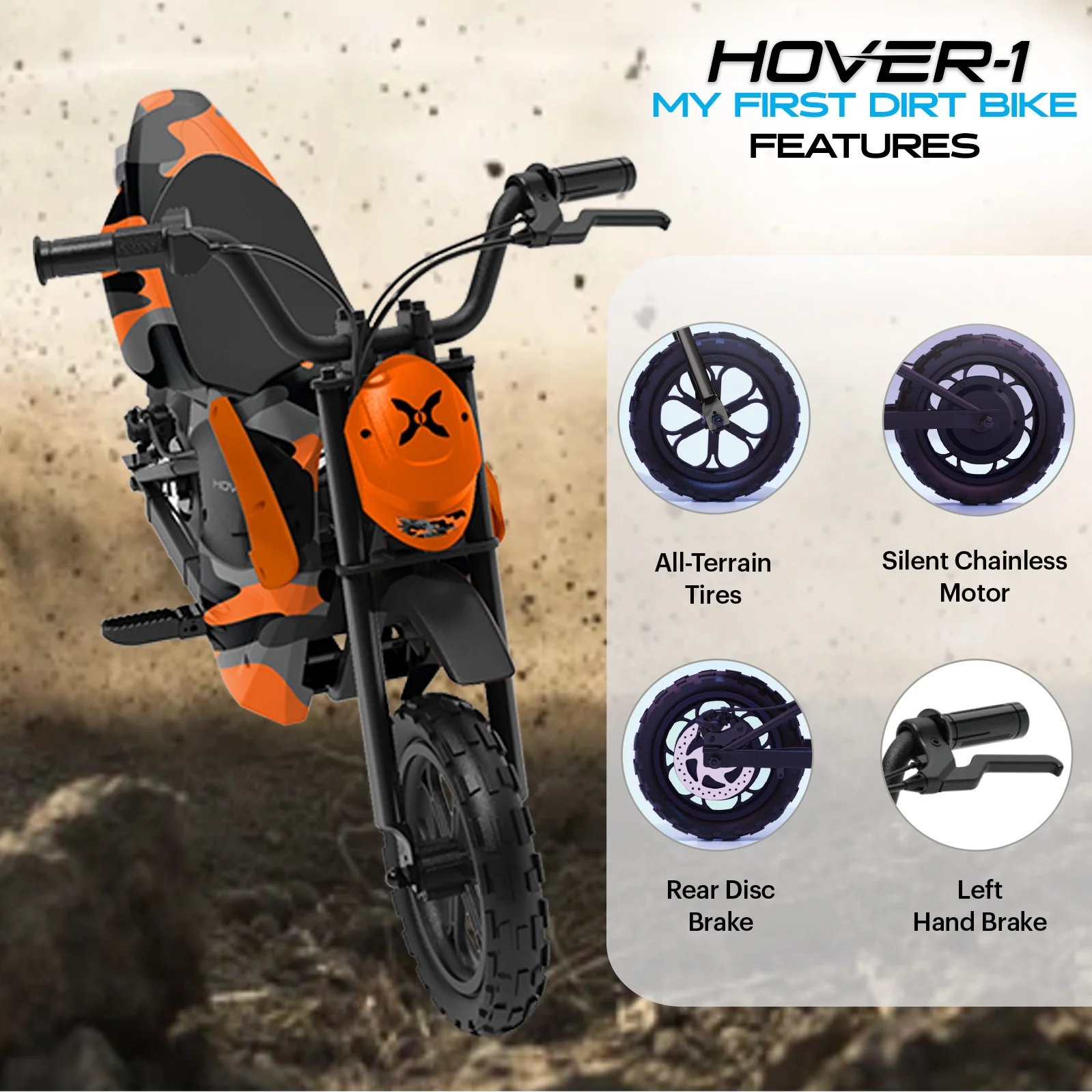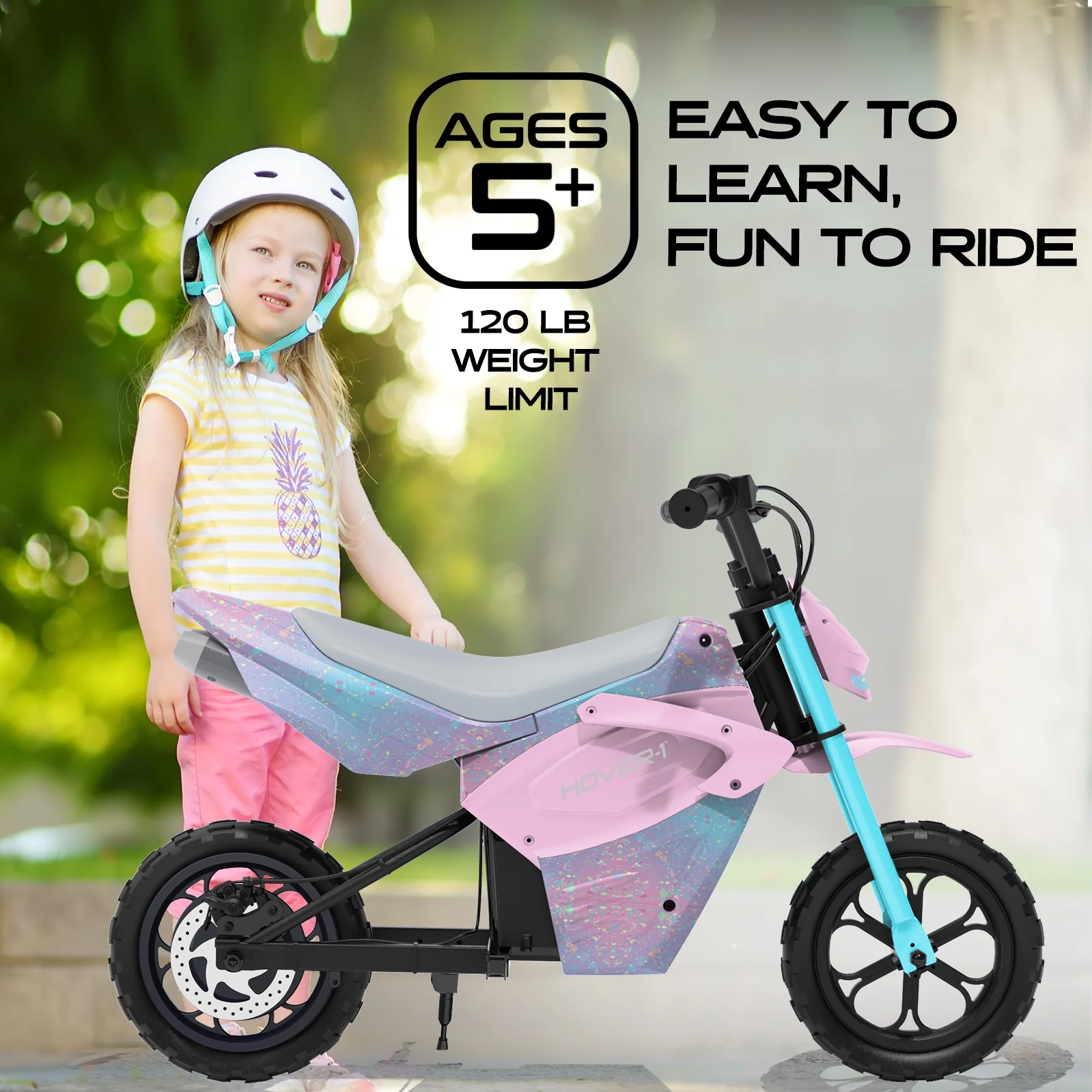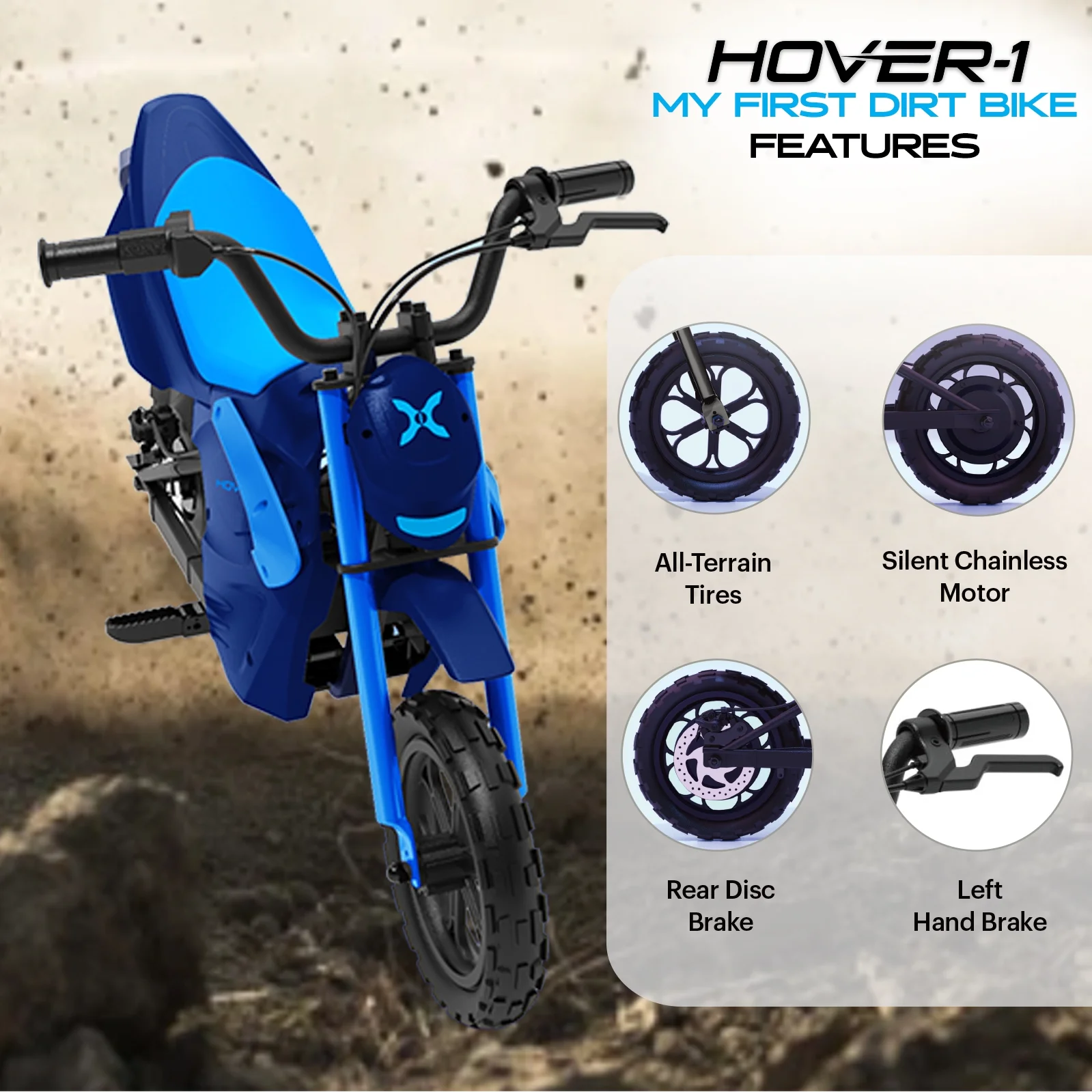Hover - 1 My First Dirt Bike for Kids - 300W Motor, 9MPH Max Speed, 9 Mile Range, 12 Off - Road Tires, 120 lb Max Weight, Twist Grip Throttle & Rear Disc Brake Electric Dirt Bike for Kids Ages 5+ Years