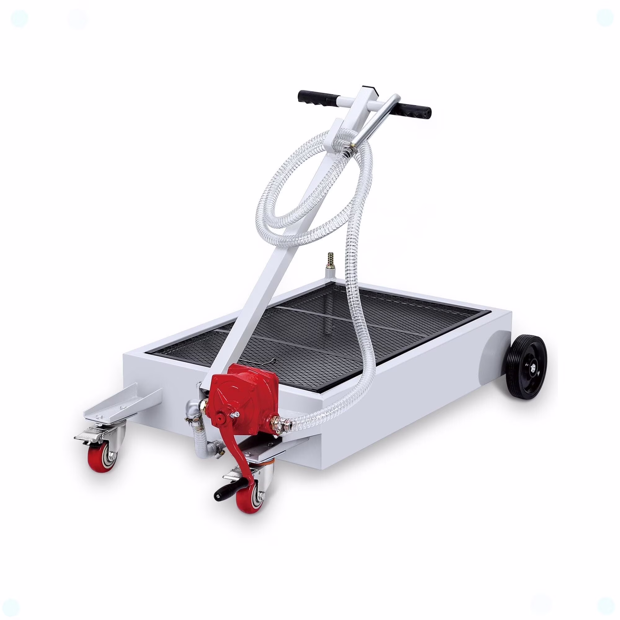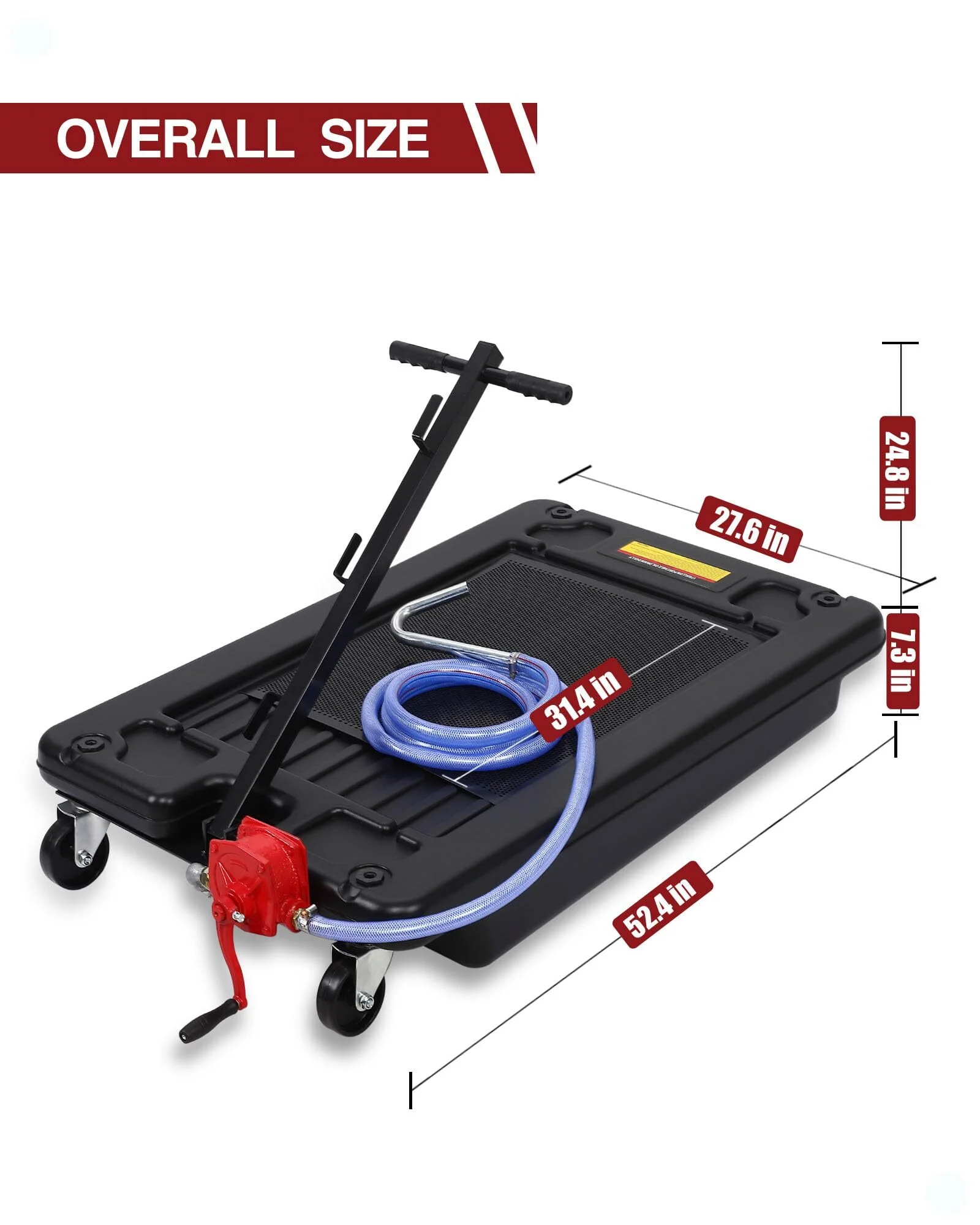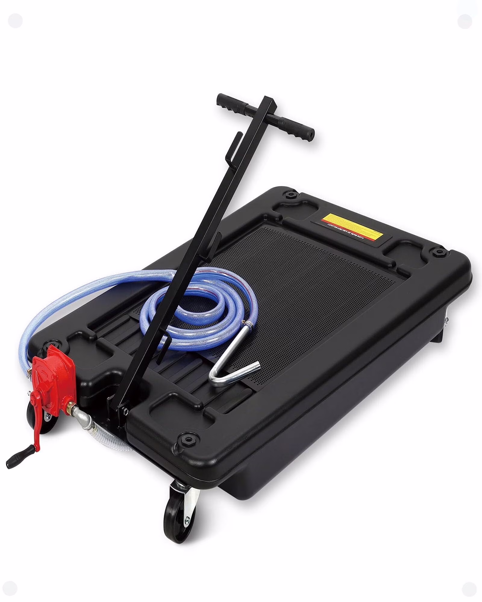 - ??��CASTER DESIGN��- RIEDHOFF oil drain pan features four caster wheels (two fixed and two free), that allow for easy mobility and positioning, making oil-changing a breeze. The fixed wheels provide stability and support, while the free wheels allow for smooth movement around the garage or workshop floor.