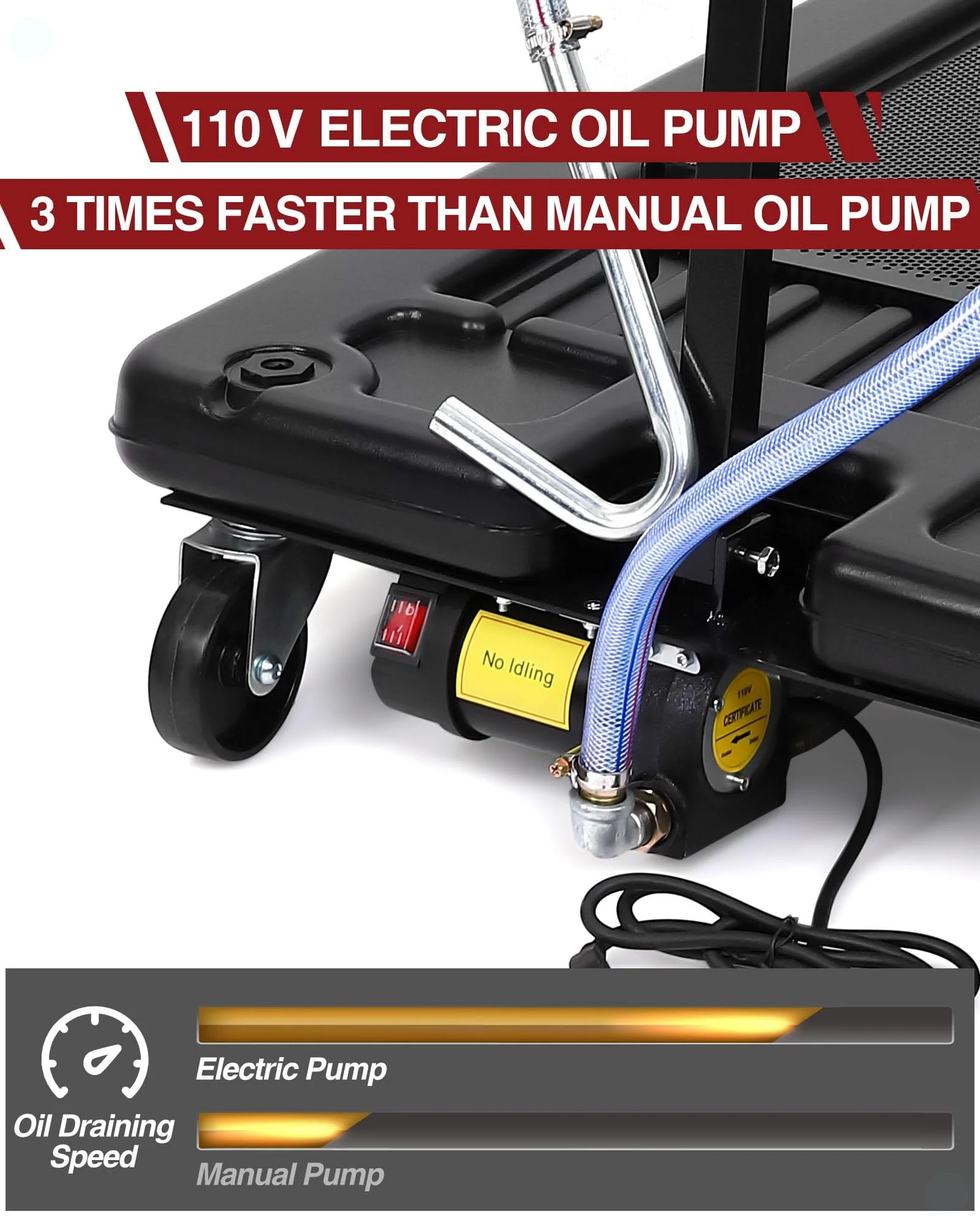 - ??��HIGH PRACTICABILITY��- This oil drain pan is highly practical and efficient. Its 110V electric pump and large capacity make oil changes fast and easy, reducing the time and effort required for each oil change.