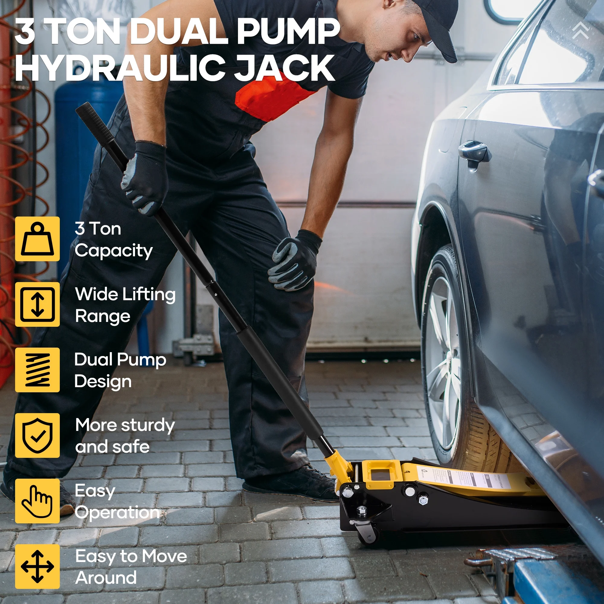 - 3 Ton Load Capacity: This 3 ton/6600 lbs capacity Naipo floor jack can help you lift your car for any reason. Whether you are a professional, car enthusiast, or weekend DIYer, it's a great choice for you! It can help you replace a tire, change oil or maintain the brake etc ,which can meet your any needs.
