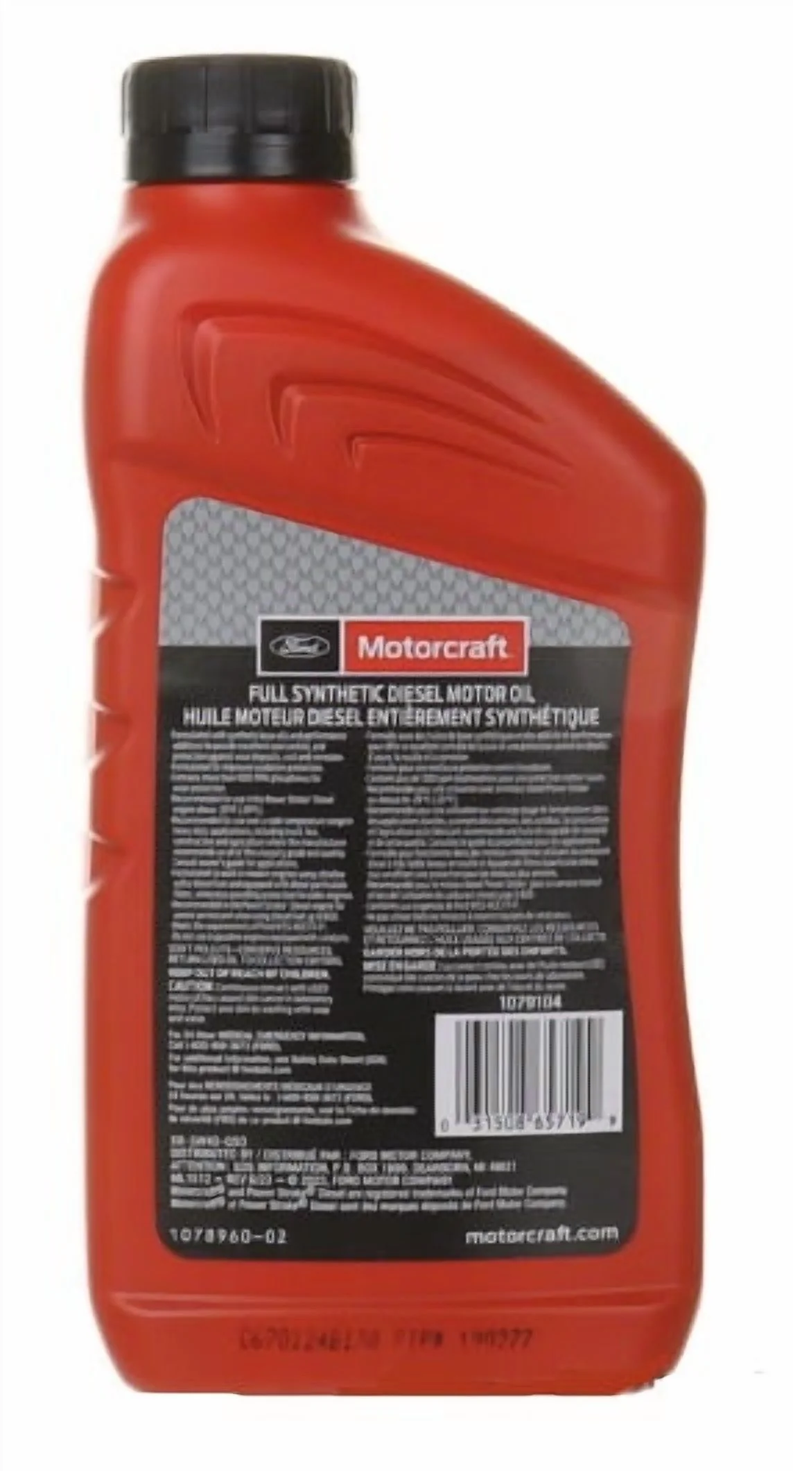 Motorcraft? SAE 5W-40 Full Synthetic Diesel Motor Oil is a high-performance light- and heavy-duty diesel engine oil formulated with synthetic base oils and unique additive technology and recommended by Ford Motor Company. It is particularly recommended for use in Ford vehicles equipped with Power Stroke? diesel engines as in truck, bus, construction and other heavy-duty diesel engine applications, as well as the smaller Ford diesel engines