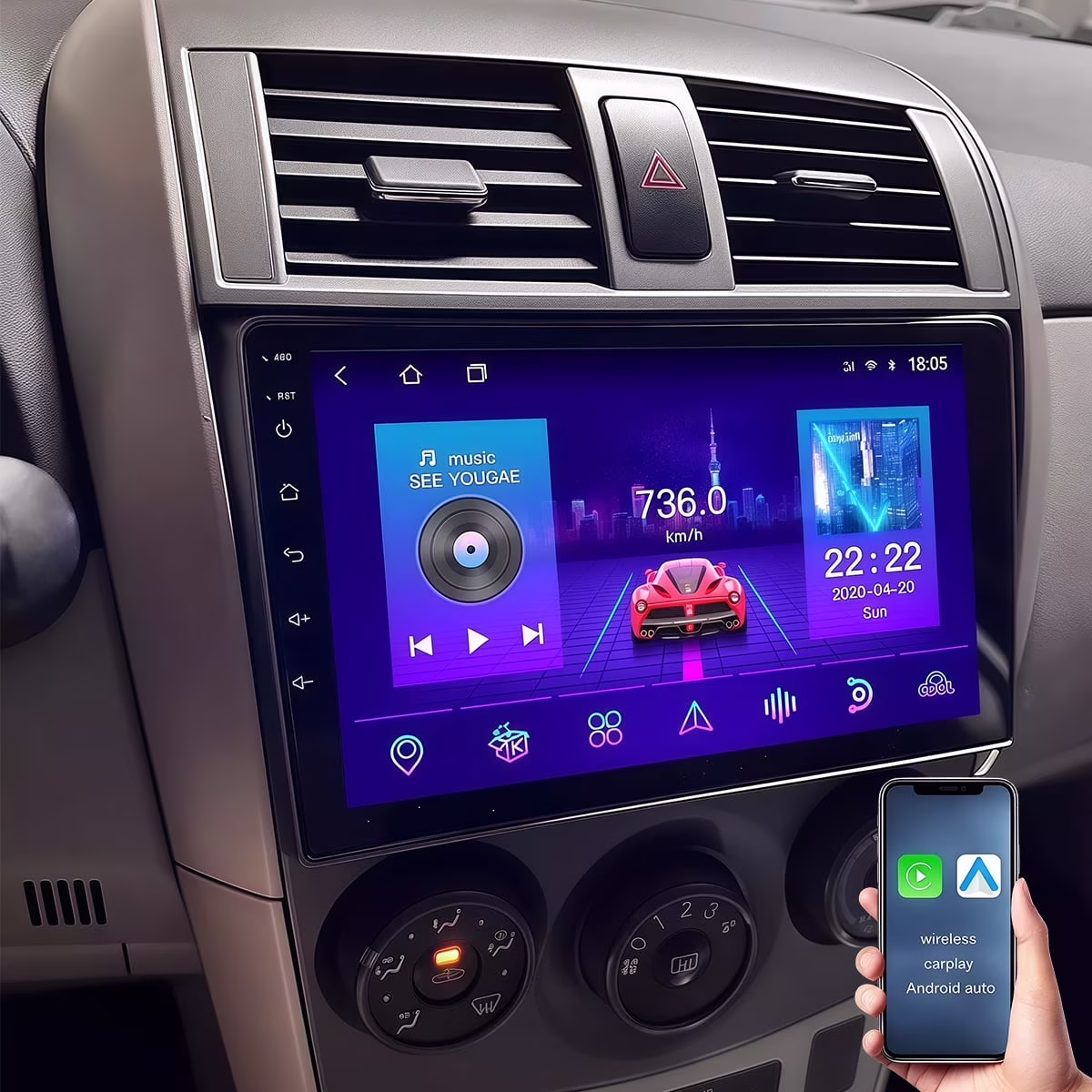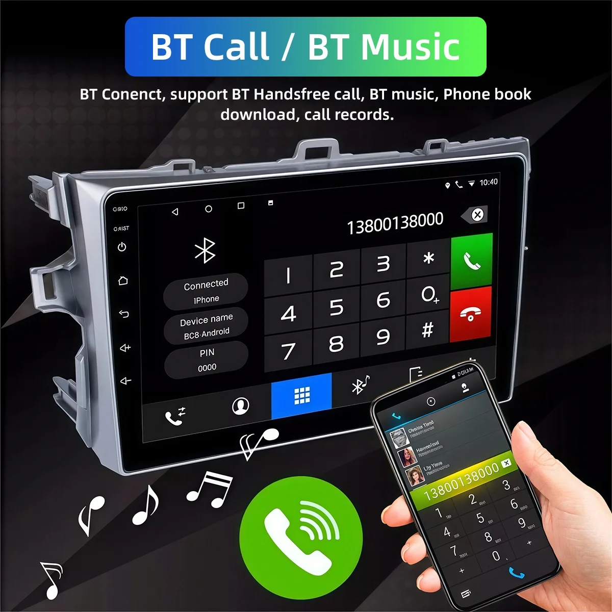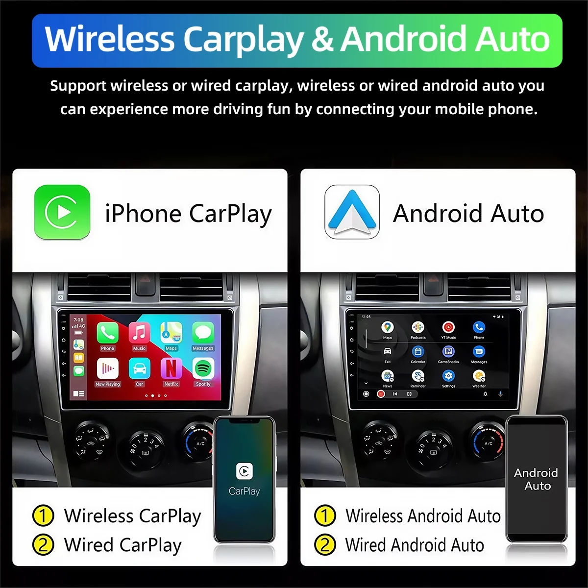 - Carplay and Android Auto: This touch screen car stereo for Toyota Corolla supports wireless and wired connections for CarPlay and Android Auto, providing instant access to calls, maps, music, and more.