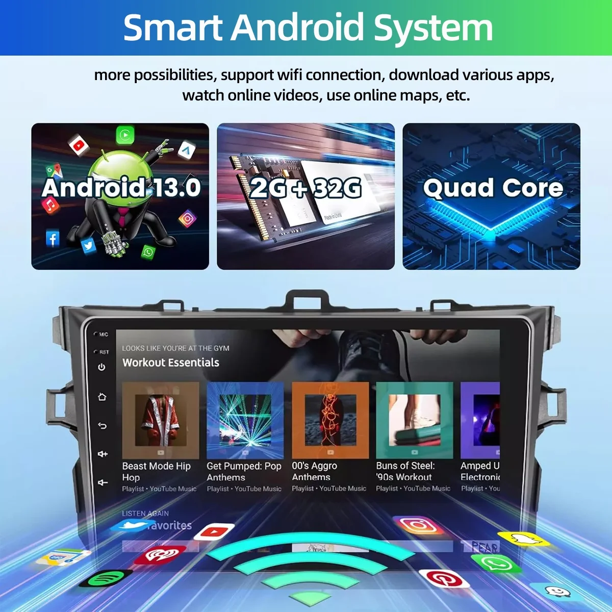 [4 CORE 2G+32g] for Toyota Corolla 2009 - 2013 Car Radio with Wireless Carplay/Android Auto, 9 in Android 13 IPS Touch Screen Car Stereo, Bluetooth, GPS Navi, WiFi + Backup Camera