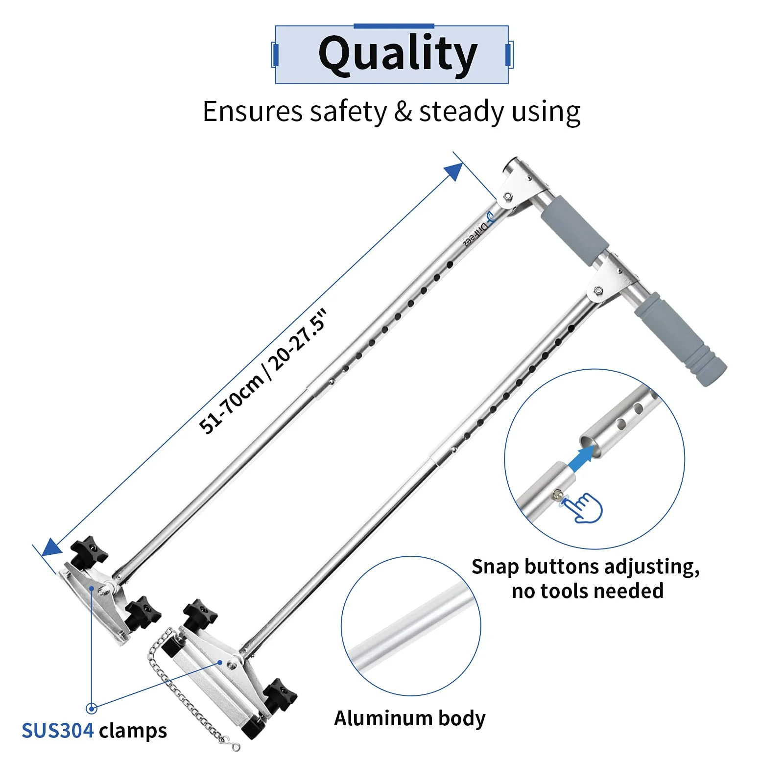 - Good design: No tools needed. Assemble, Install and Adjust by hands, users can find suitable length through snap buttons, 10 levels. Do not use if it is not long enough