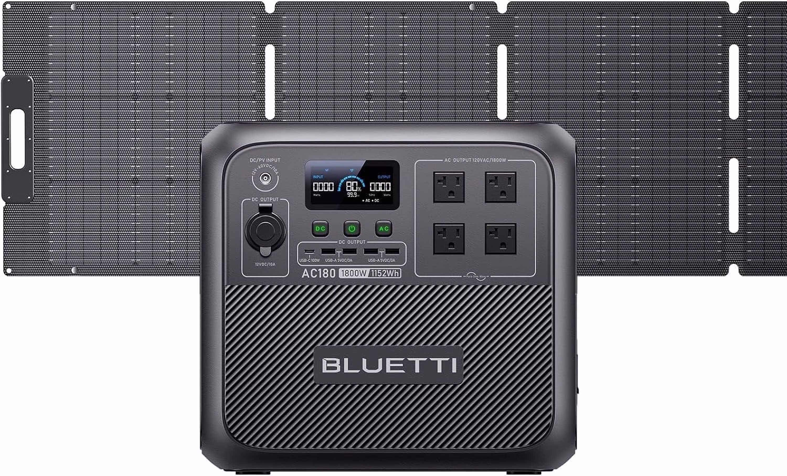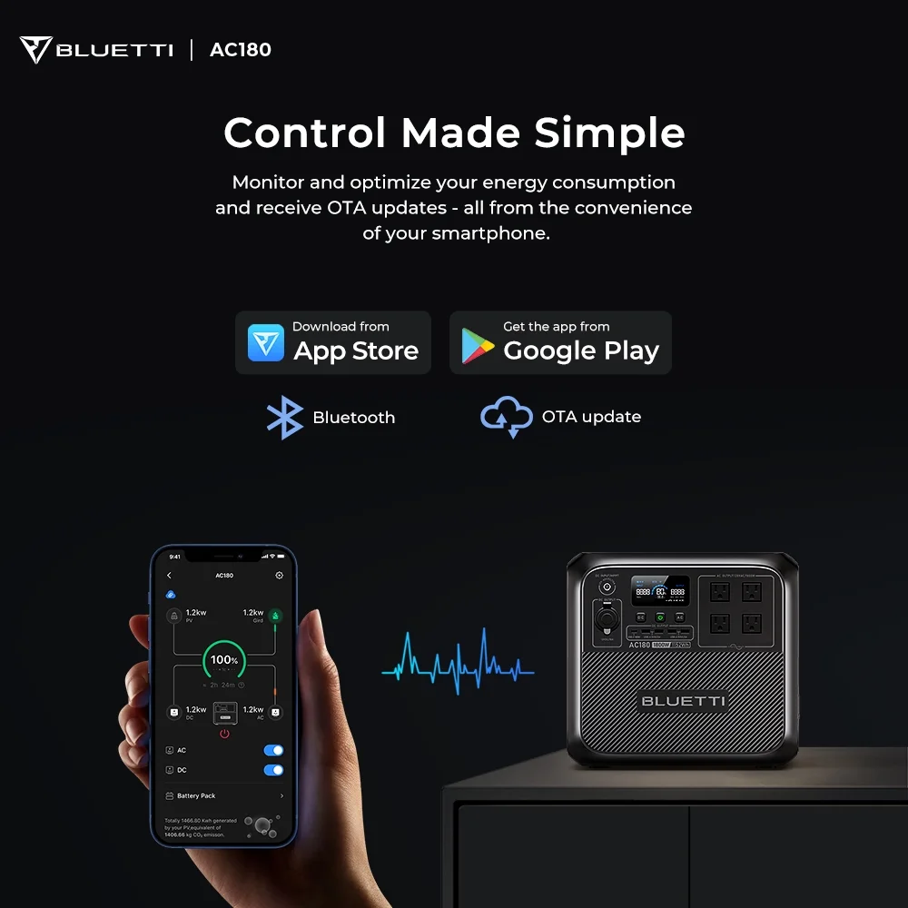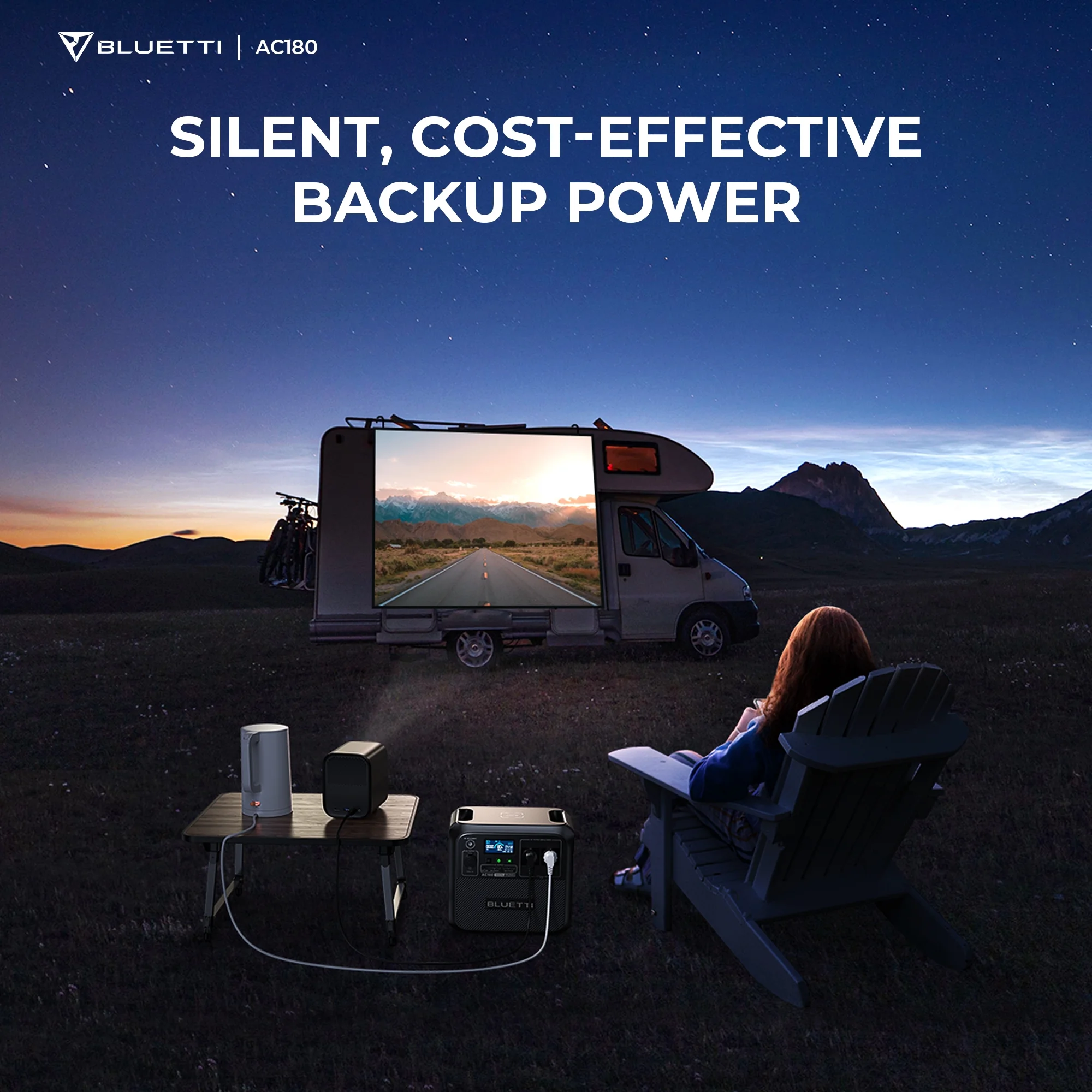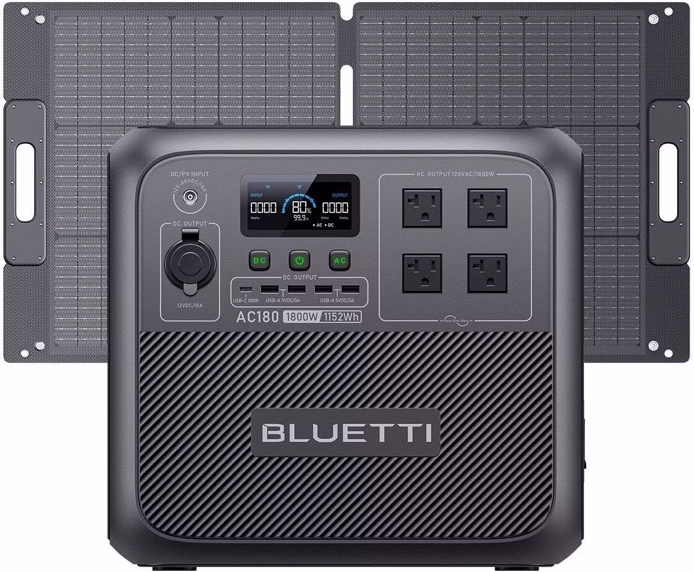 - BLUETTI AC180 Portable Power Station, 1PCS Multimeter,AC Charging Cable, Car Charging Cable, Solar Charging Cable, User Manual, Warranty Card, and Friendly Customer Service.