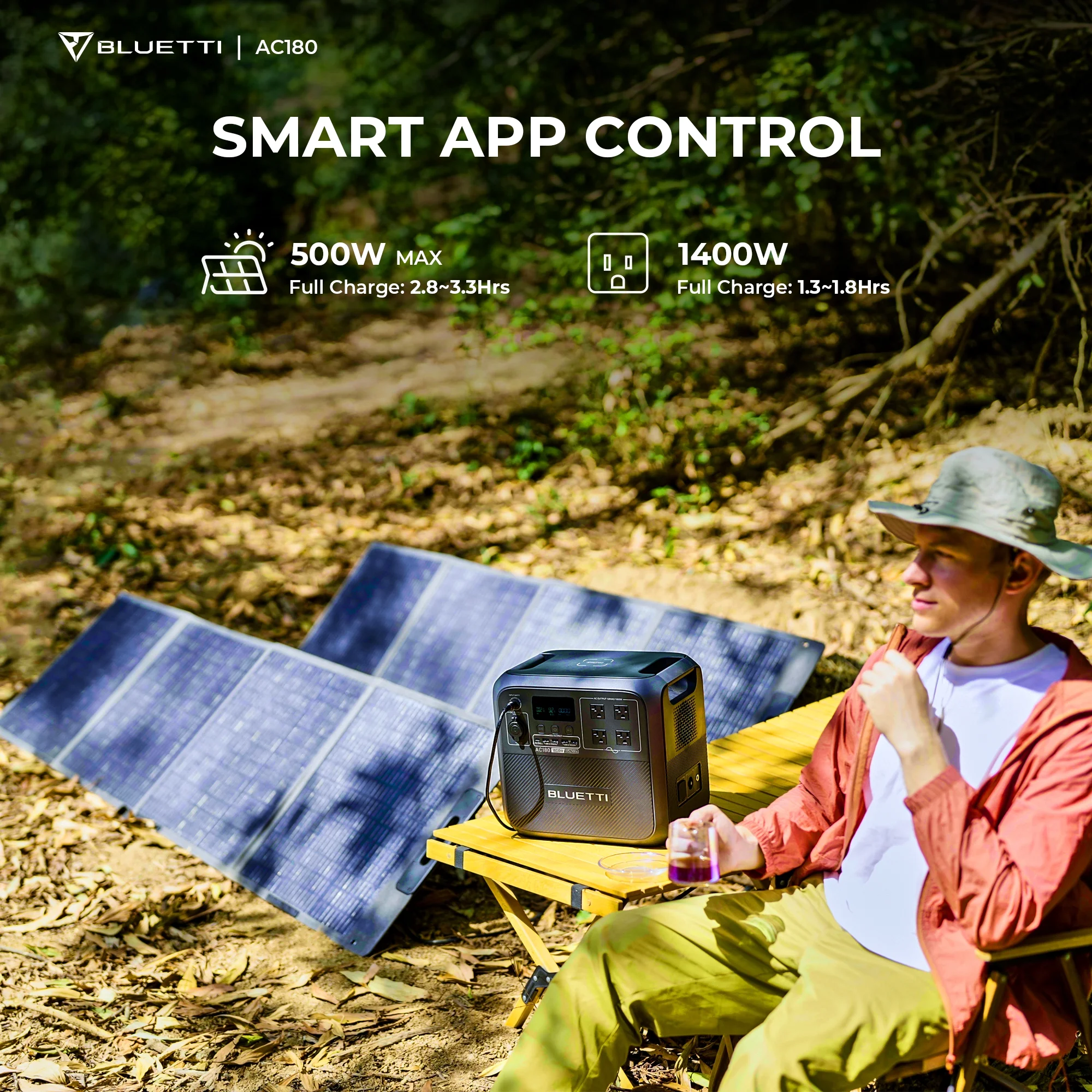 - The AC180 can handle up to 500W solar input, allowing it to be fully charged in 2.8-3.3 hours using solar power. This helps you reduce energy consumption in the long run.