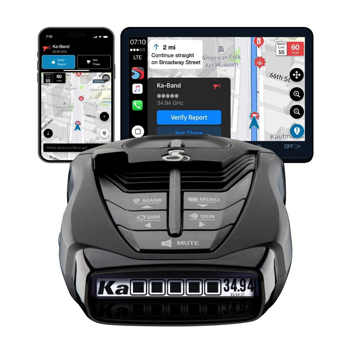 - Bluetooth Connectivity integrates your radar detector with our Cobra community App. App Integration includes live automatic community reports, locations of stop lights and speed traps, red light cameras, road hazards, and live police alerts.