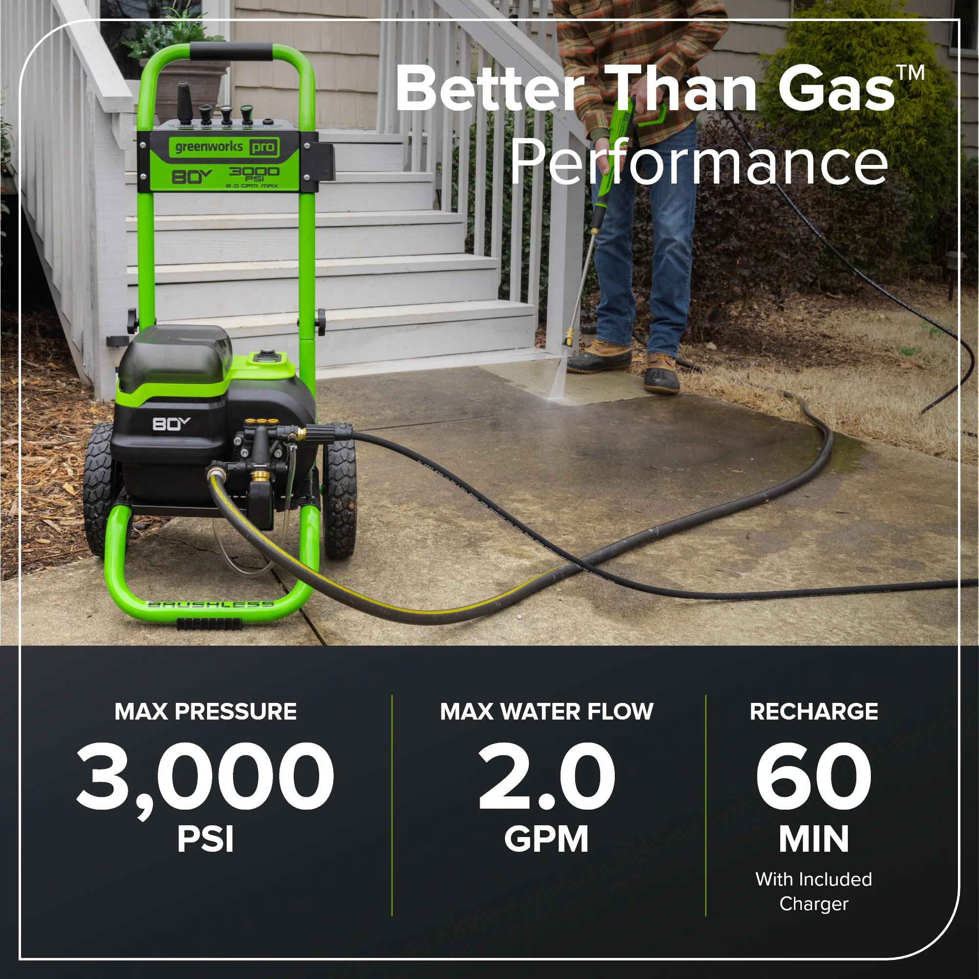 - [TRUBRUSHLESS MOTOR] Powerful TruBrushless motor generates 3000 PSI and 2.0 GPM for maximum cleaning power