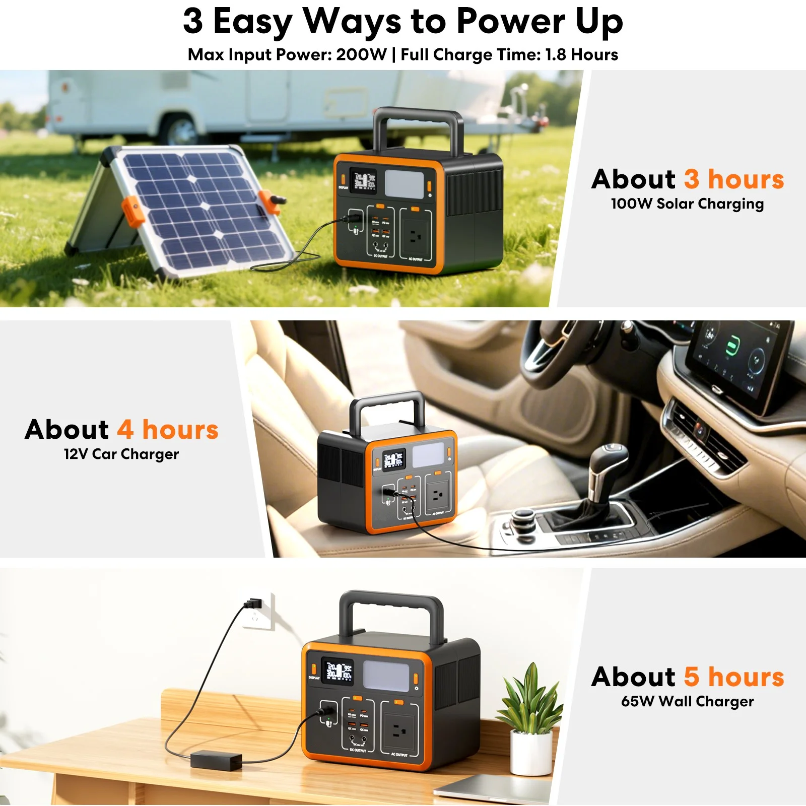 - ��5 Recharge Options��Charge via wall (4.9h), 100W PD (3.4h), dual DC + PD (1.8h), car (2.9h), or 120W solar��making it one of the most versatile outdoor generators.