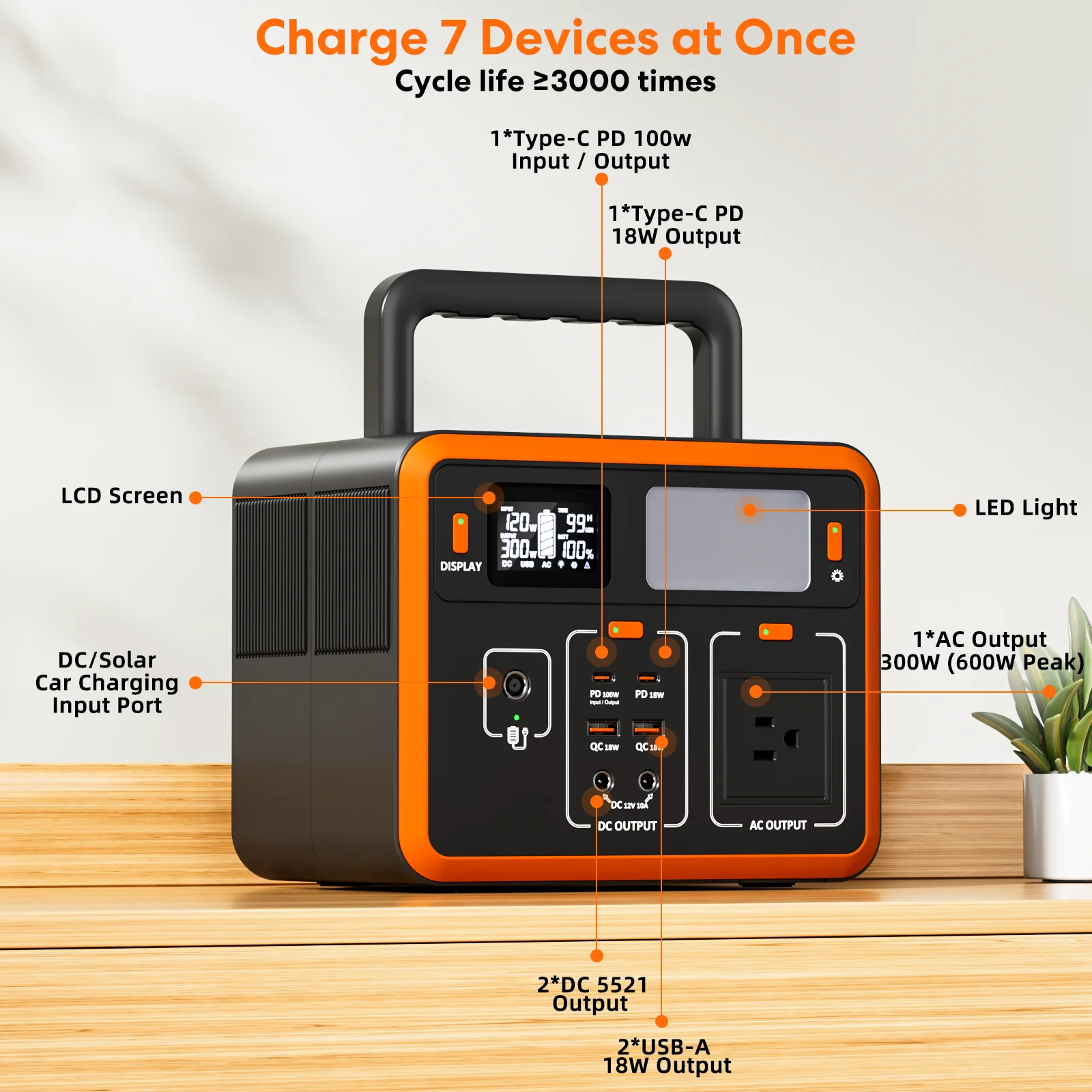 - ��Premium All-in-One Power Station��300W AC (pure sine wave) + 100W USB-C PD (in/out). Runs laptops, mini-fridges, and small devices with fast charging.
