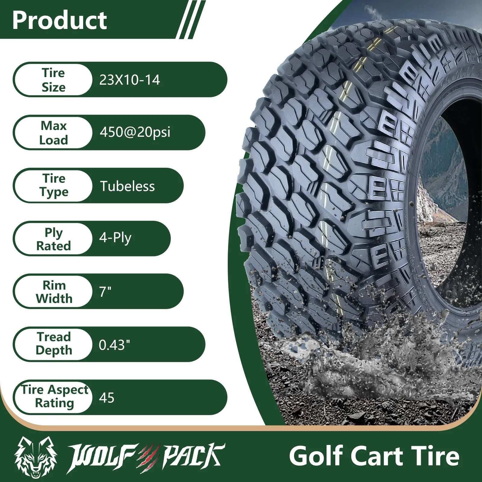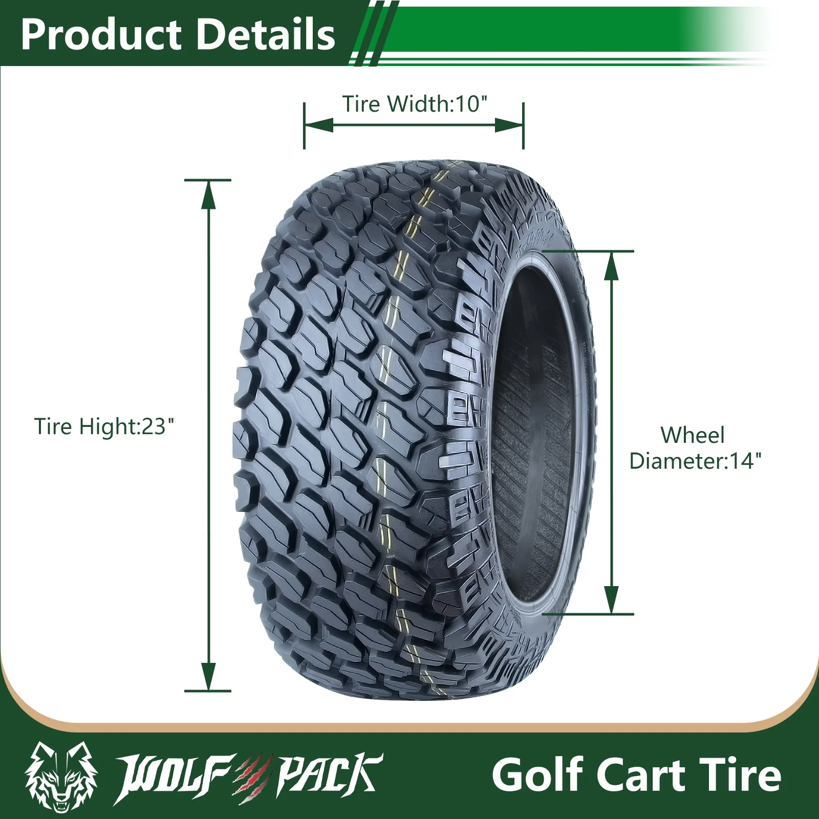 Set 4 WOLF PACK 23X10 - 14 Golf Cart Tires Non - Directional Tubeless Tire Multi - Terrain Tire with Superior Traction and Mud - Resistant Self - Cleaning Tread Design for Long - Lasting Performance