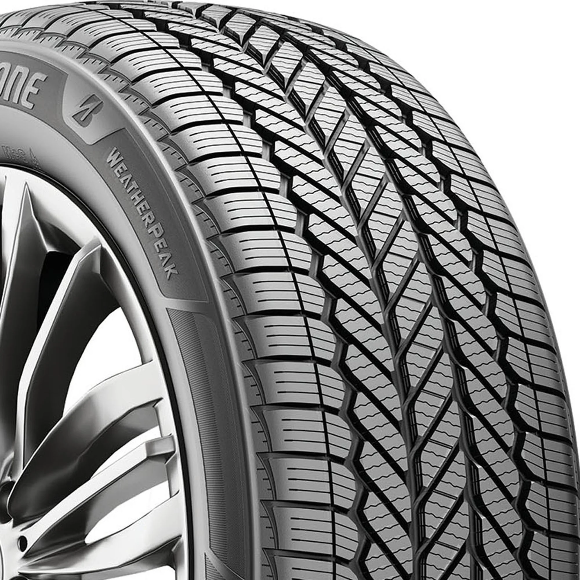 Bridgestone's Weatherpeak is an all-weather tire for passenger cars, CUVs, and minivans, and features full-depth 3D sipes for strong grip and a longer tread life. Backed by a 70,000 mile limited manufacturer tread life, the Weatherpeak's groove channel and snow vices increase snow on snow grip while also draining water out of the tread to reduce the risk of hydroplaning.