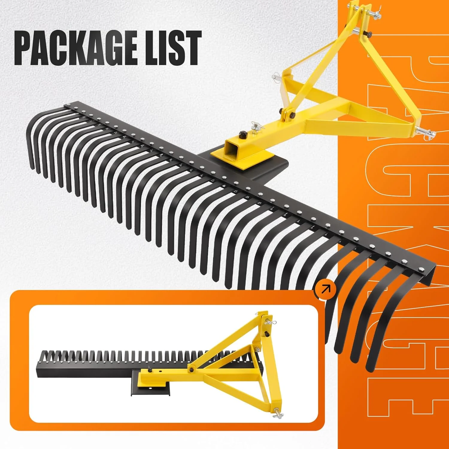 - Package & Installation: Note: The landscape rake which you received is unassembled. You need assemble this rake with necessary installation accessories and a detailed assembly manual which are included. The rake can be easily installed using screws and pins, You will receive 2 packages, but the 2 package may not arrive at the same time