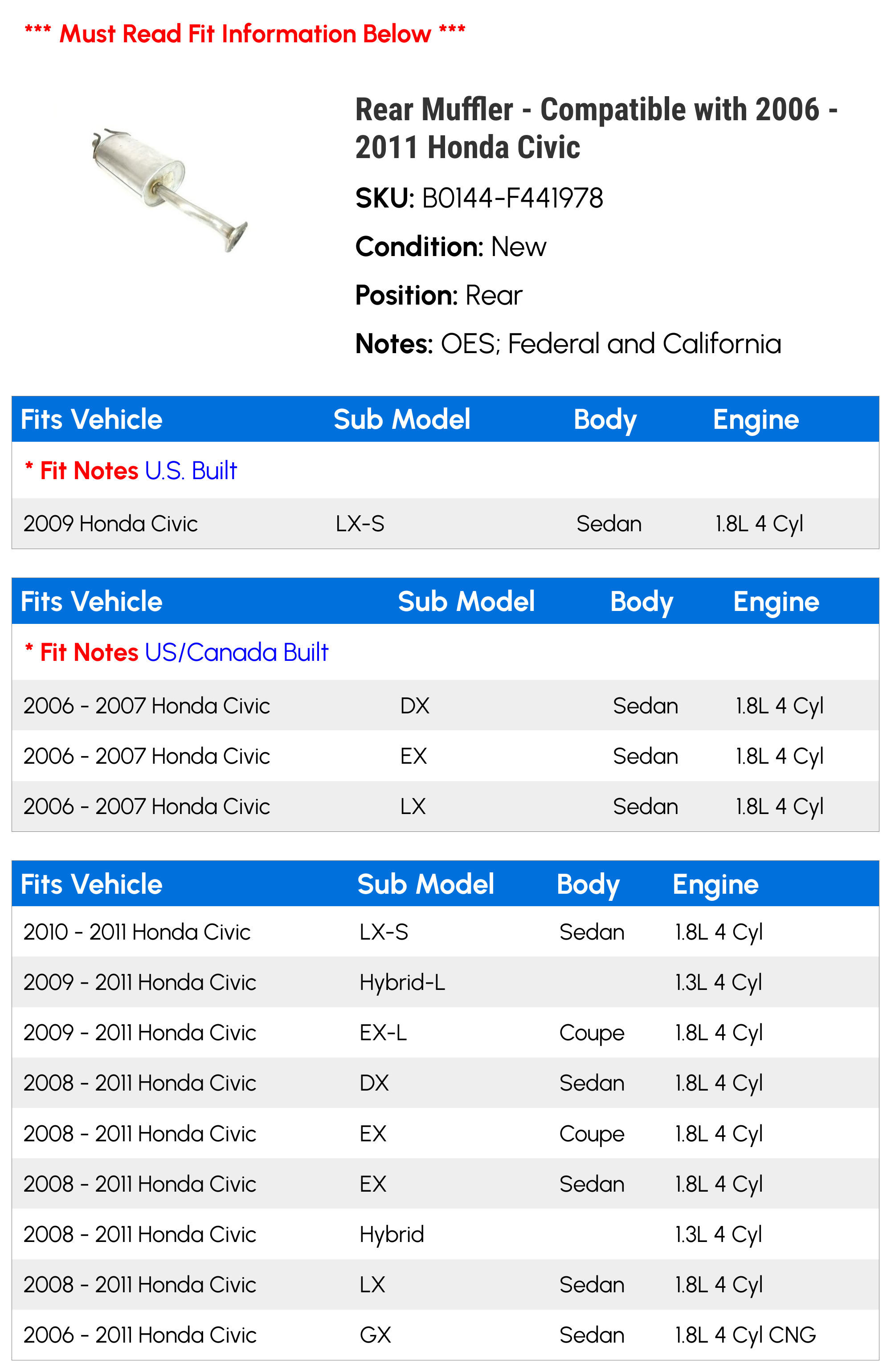 - 2008 - 2011 Honda Civic EX Sedan 1.8L 4 Cyl