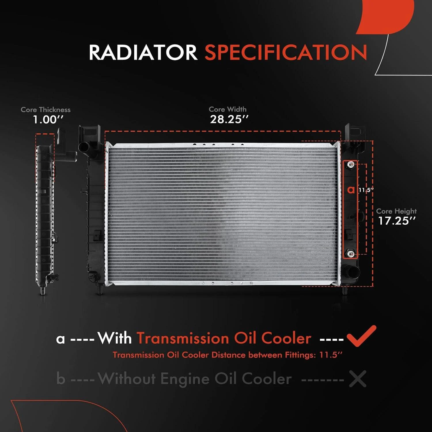 Note: It comes Without Engine Oil Cooler; It fits the model with Automatic TransmissionA-Premium Engine Coolant Radiator with Transmission Oil Cooler Compatible with Chevrolet Silverado 1500 2500, Tahoe 00-06 & GMC Sierra 1500 2500, Yukon, Automatic Trans, Replace# 52484047, 52486598