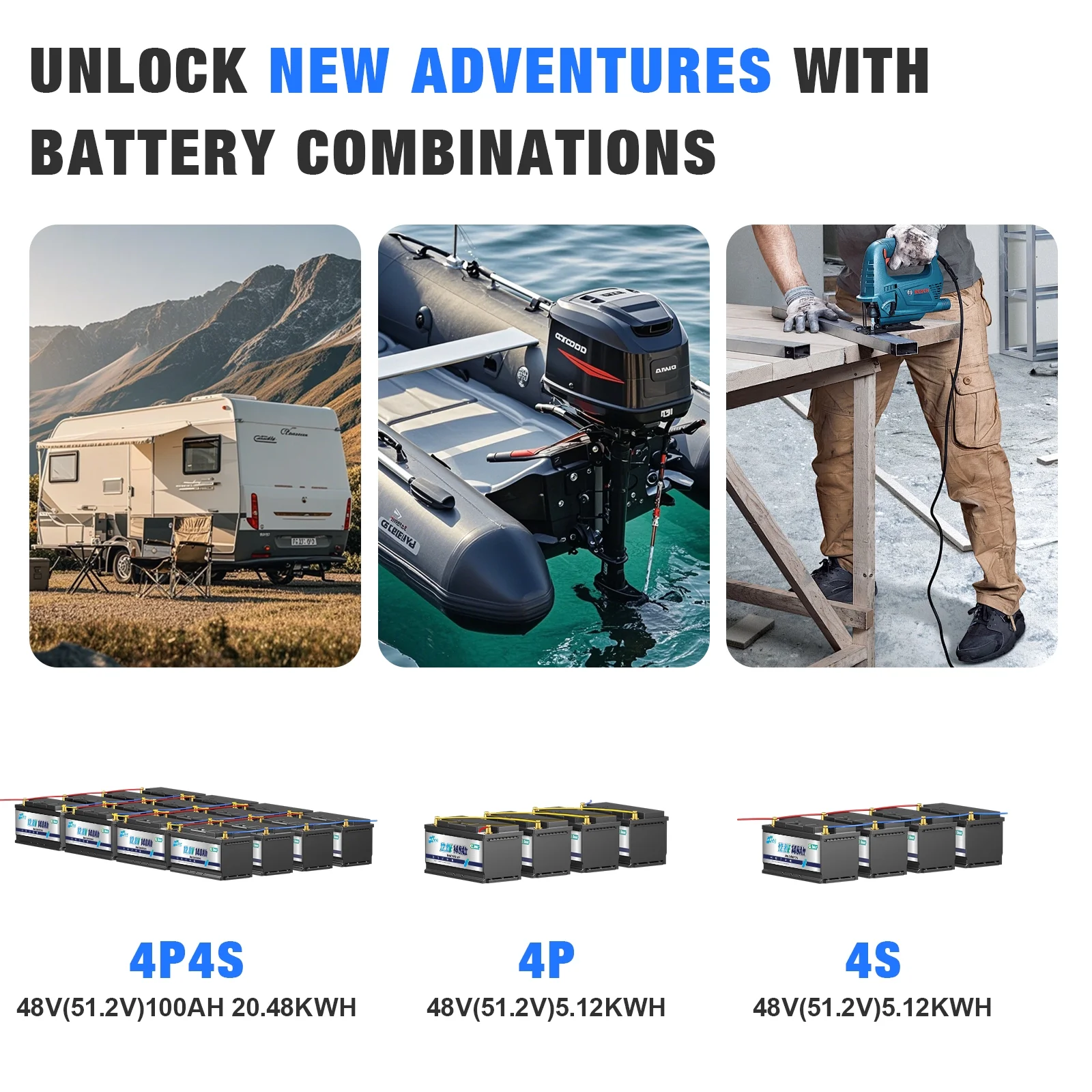 - Lithium battery 12v 140ah can be connected in series and parallel for higher voltage and larger capacity. You can connect them as 24v, 36v, 48v or up to 400ah capacity and can be widely used in RVs, trolling boats, boats, off grid systems, solar systems and are the best choice for 12V deep cycles applications in residential backup power.