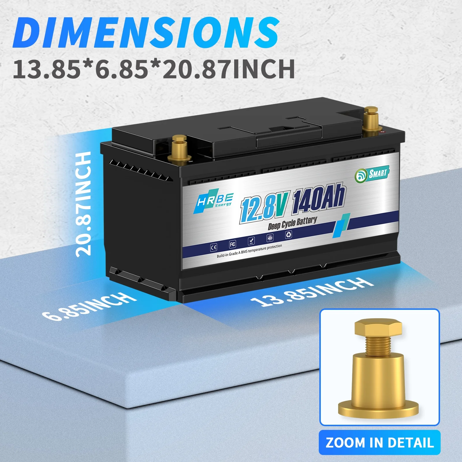 - 12V 140Ah LiFePO4 Lithium Battery Bluetooth is built-in upgraded smart 100A BMS, accessed Bluetooth 5.0 module, Bluetooth function allows you to monitor the battery information in real time through APP, and easily cope with all kinds of environments and situations at anytime, anywhere. Moreover, the smart 100A BMS can prevent the battery from over-charging, over-discharging, over-current and short-circuit.