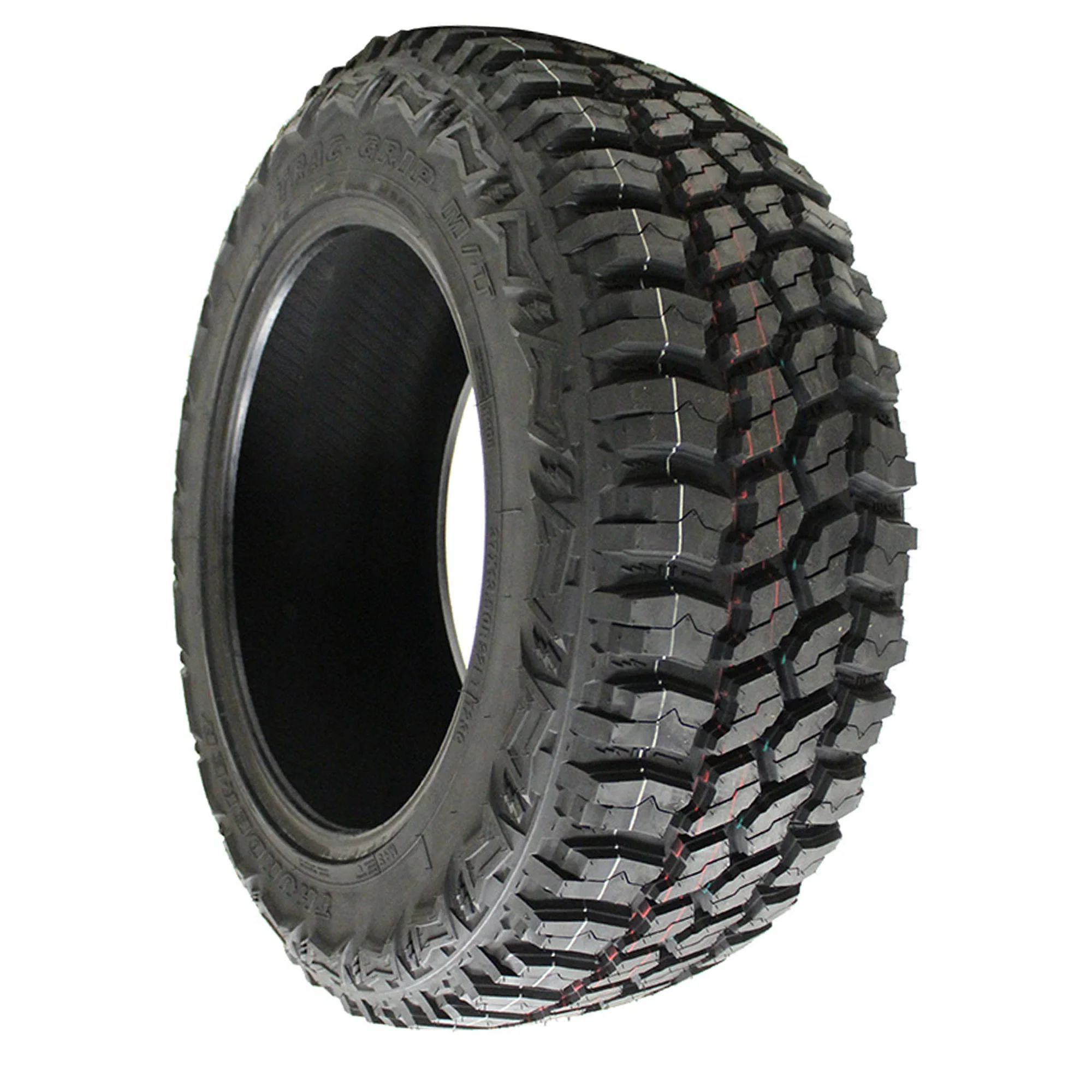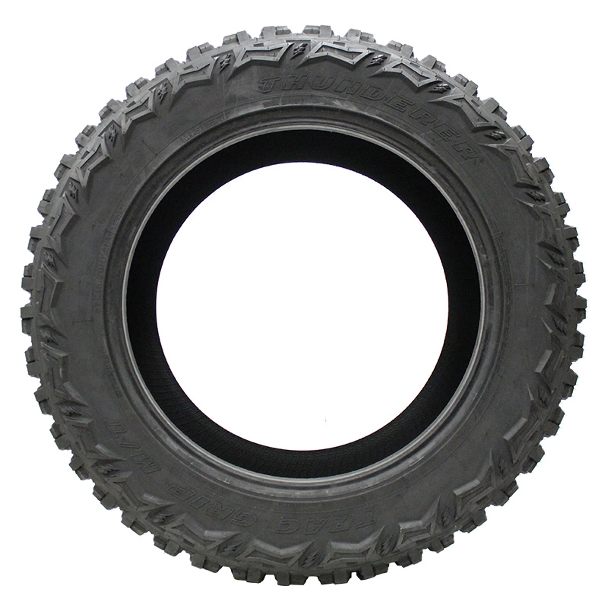 The Trac Grip M/T R408 from Thunderer is a mud-terrain tire that's built for use on light trucks and SUVs. The Trac Grip M/T R408 is designed with an extra-tough tread formulation, high-void tread pattern that easily ejects mud and debris for enhanced traction, up to 12 ply rating, an innovative mix of open and tiered tread block elements, and your choice of black letter or raised white letter sidewall.