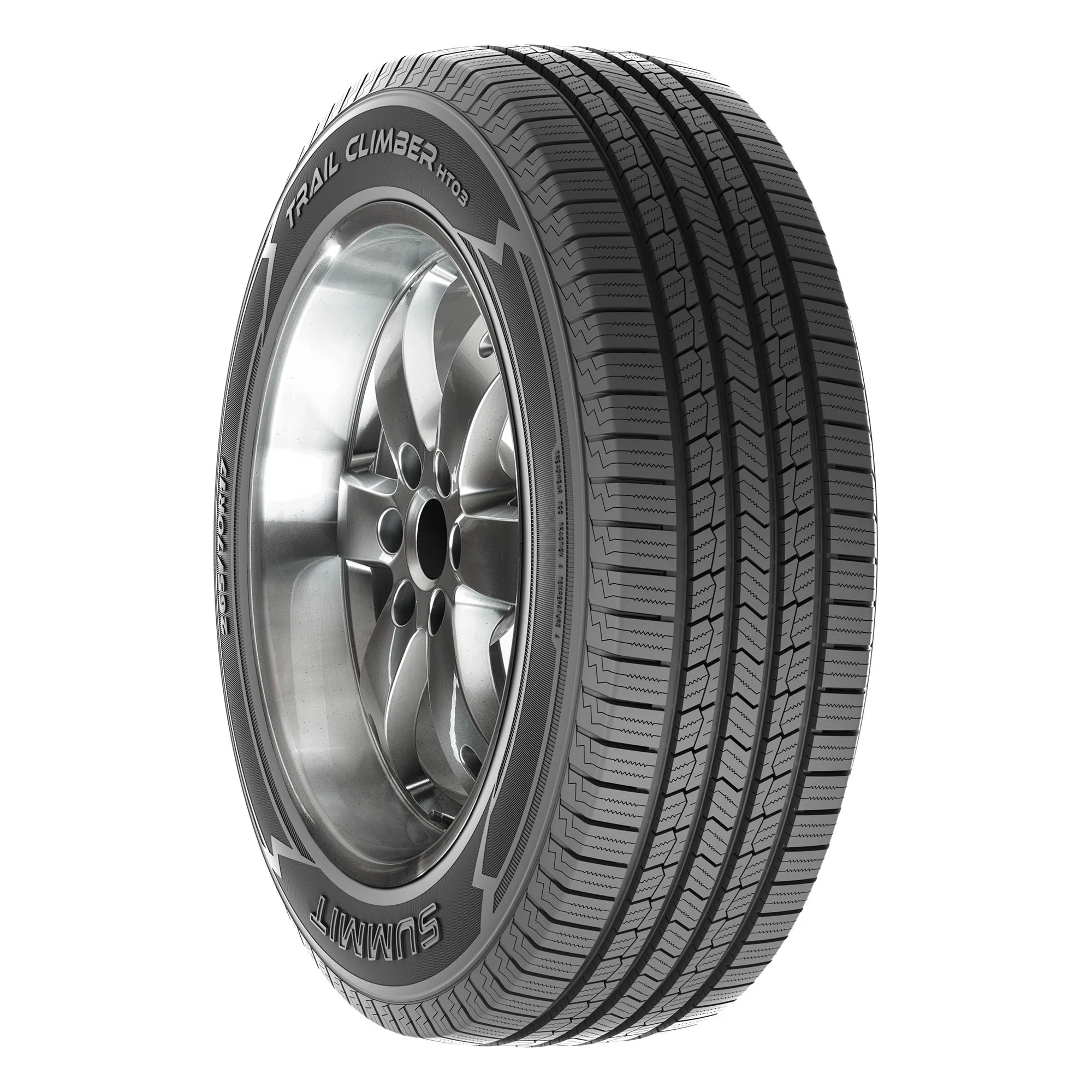 The Trail Climber HT03 is Summit's premier highway-terrain tire for light trucks and SUVs. The Trail Climber HT03 is designed for year-round performance and ride comfort, with four circumferential channels and a pattern of 3D sipes for consistent grip in wet or wintry weather. Void angles and lateral groove tie bars enhance air flow around the tire and keep road noise low, and the Trail Climber HT03 has up to 60,000 mile limited manufacturer tread life warranty depending on the tire's size.