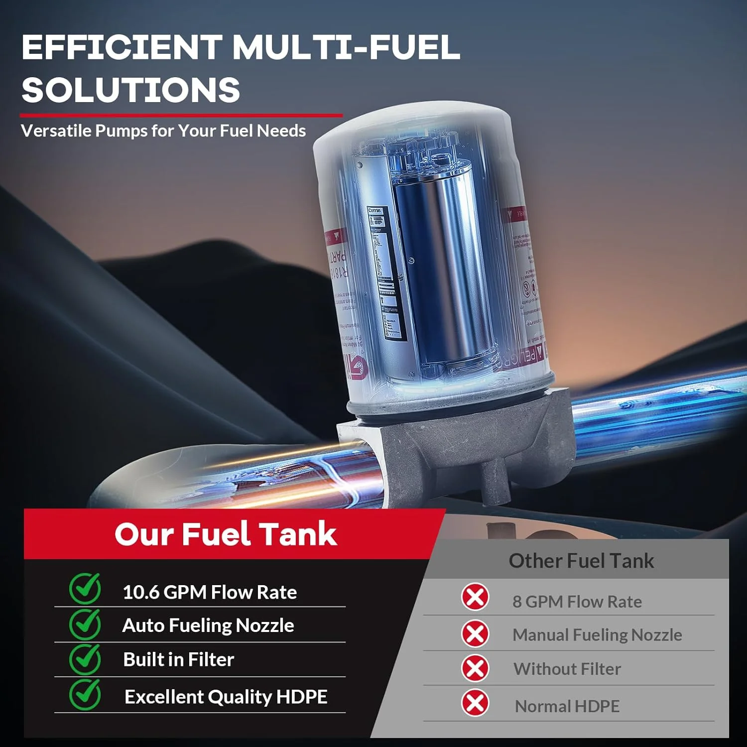 - Advanced Filtration & Accurate Monitoring: The upgraded filter system delivers cleaner diesel fuel, while the mechanical gauge provides real-time tank capacity readings. Easily monitor fuel levels and avoid unexpected downtime.