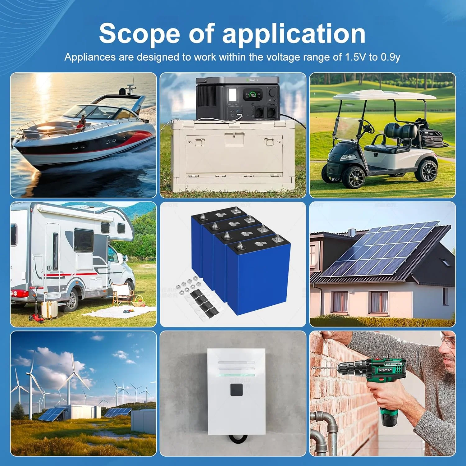 280ah 3.2V Battery 4 Pack LiFePO4 Grade A Deep Cycle Lithium Iron Phosphate Rechargeable with Nuts and Bus Bars, 8000 - 10000life Cyclesreplacement Batteries for Solar Systems, Cars, Rvs