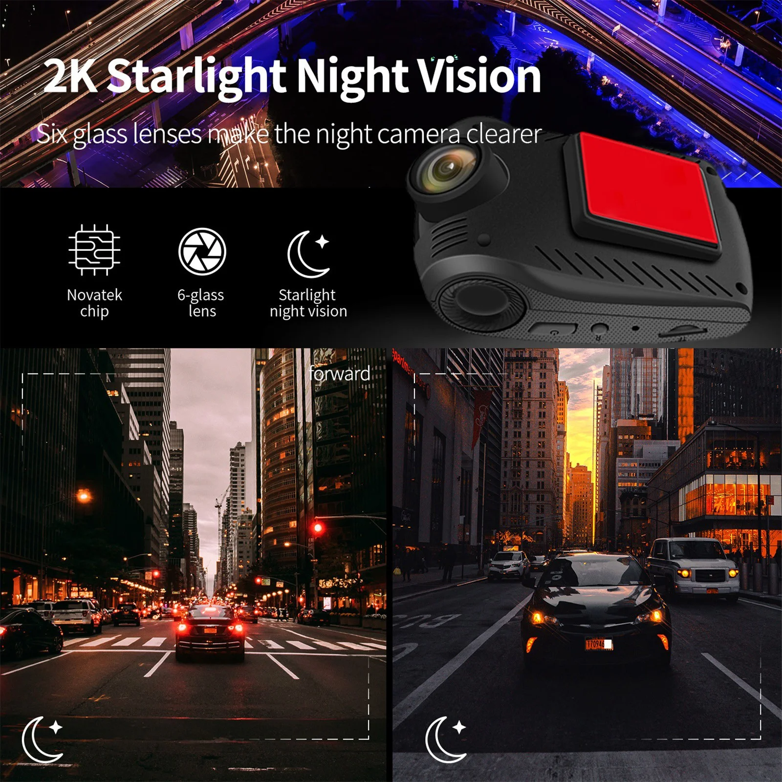 6-layer glass lens large aperture + WDR Wide Dark and low light also outstanding. The dash cam with high-specification sensor improves low sensitivity for clear imaging in low environments. Profession HDR technology ensures the of images at night.. License plates are clearly visible without the need for auxiliary light sources, even in low-light conditions.