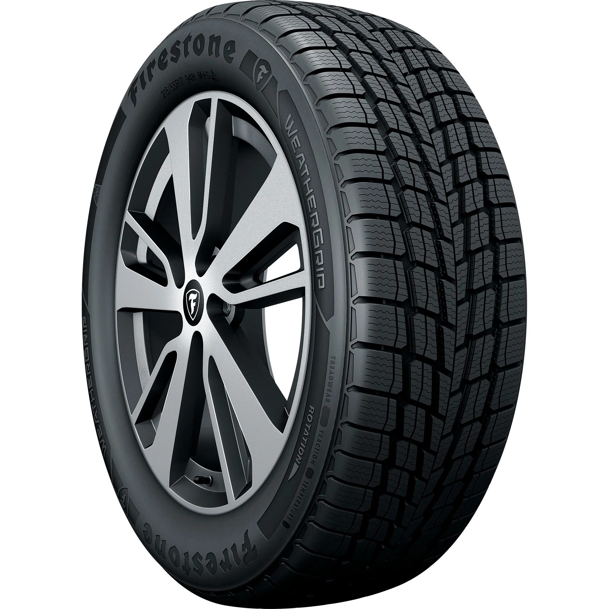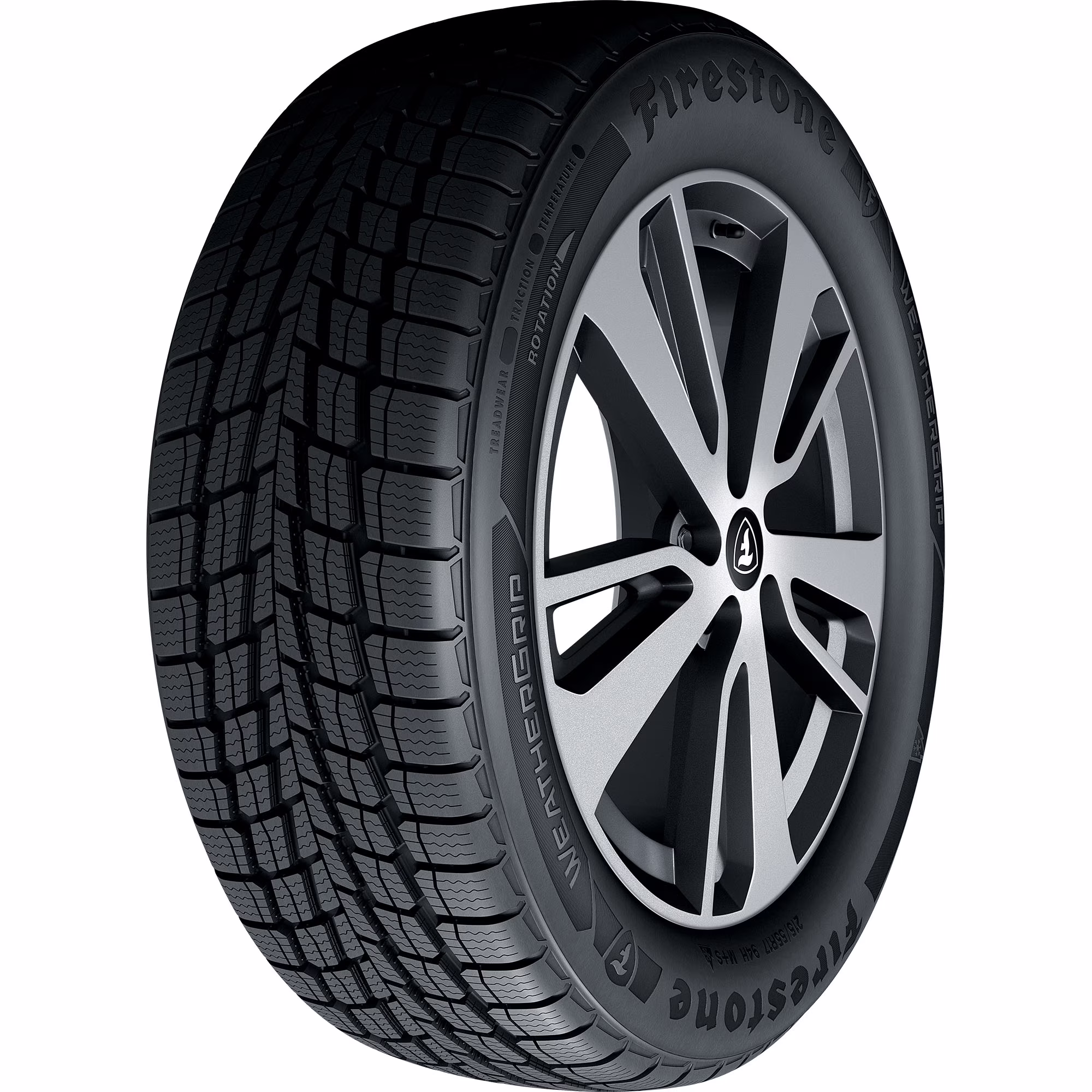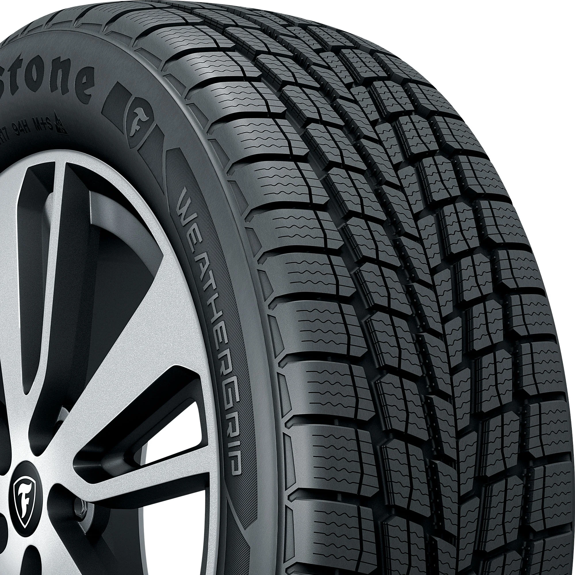 The Weathergrip from Firestone is an all-weather tire that's designed for use on sedans, minivans and crossovers. The Weathergrip features an all-weather tread pattern with circumferential and angled grooves as well as 3D sipes and Snow Traction Claw design for grip in light snow as well as open shoulder slots for water evacuation. Additionally, the Weathergrip is backed by a 65,000 mile limited manufacturer tread life.