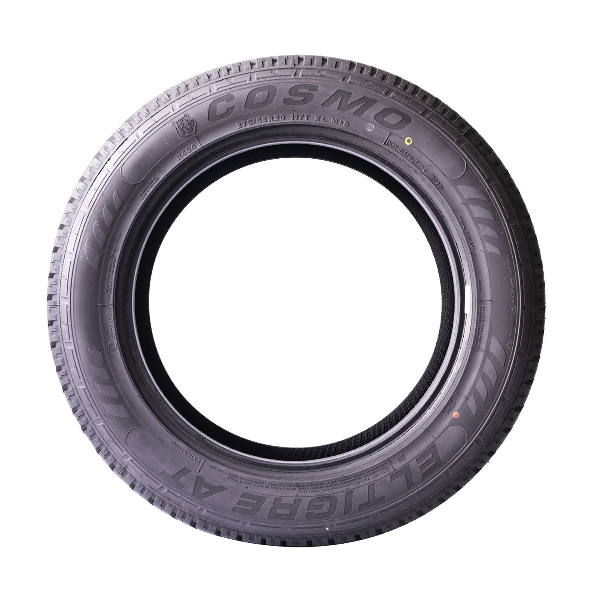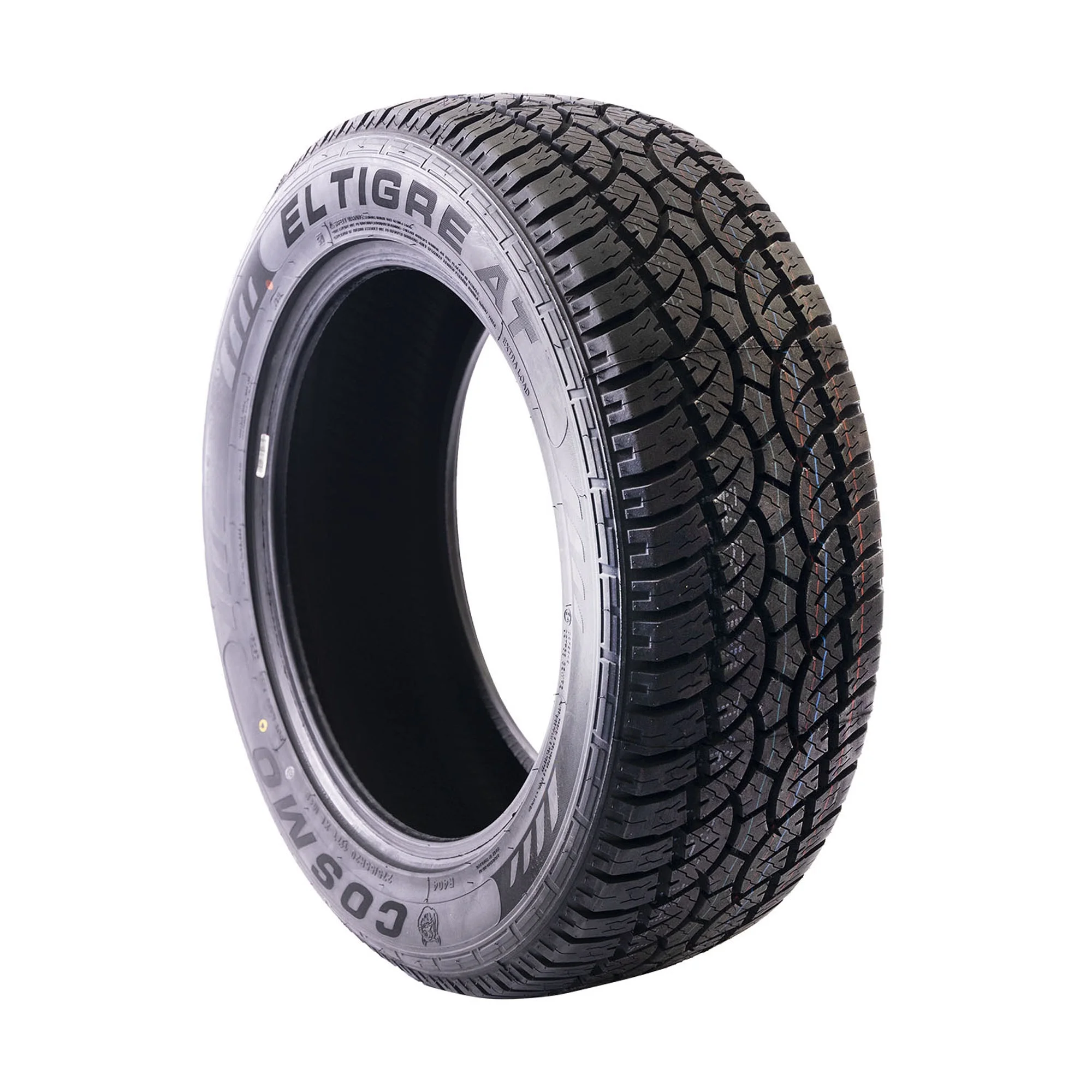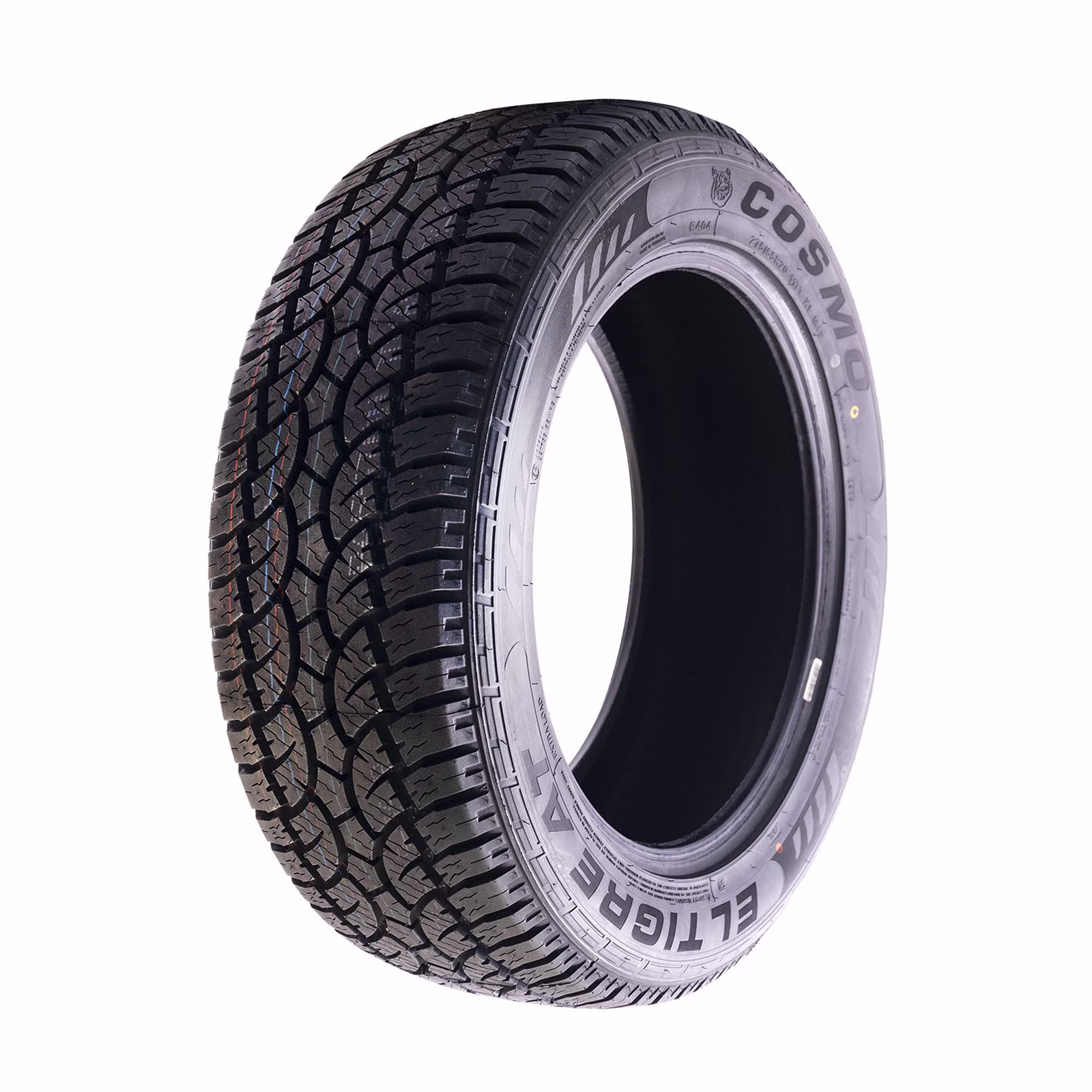 This is one tough kat! The El Tigre AT tire from Cosmo is happy to take on anything the road, the job site, and the unpaved roads will throw at it. Reinforced shoulder ribs, deep tread depth, and a unique tread patter ensures tough, dependable performance in dry and wet conditions, all year-round.