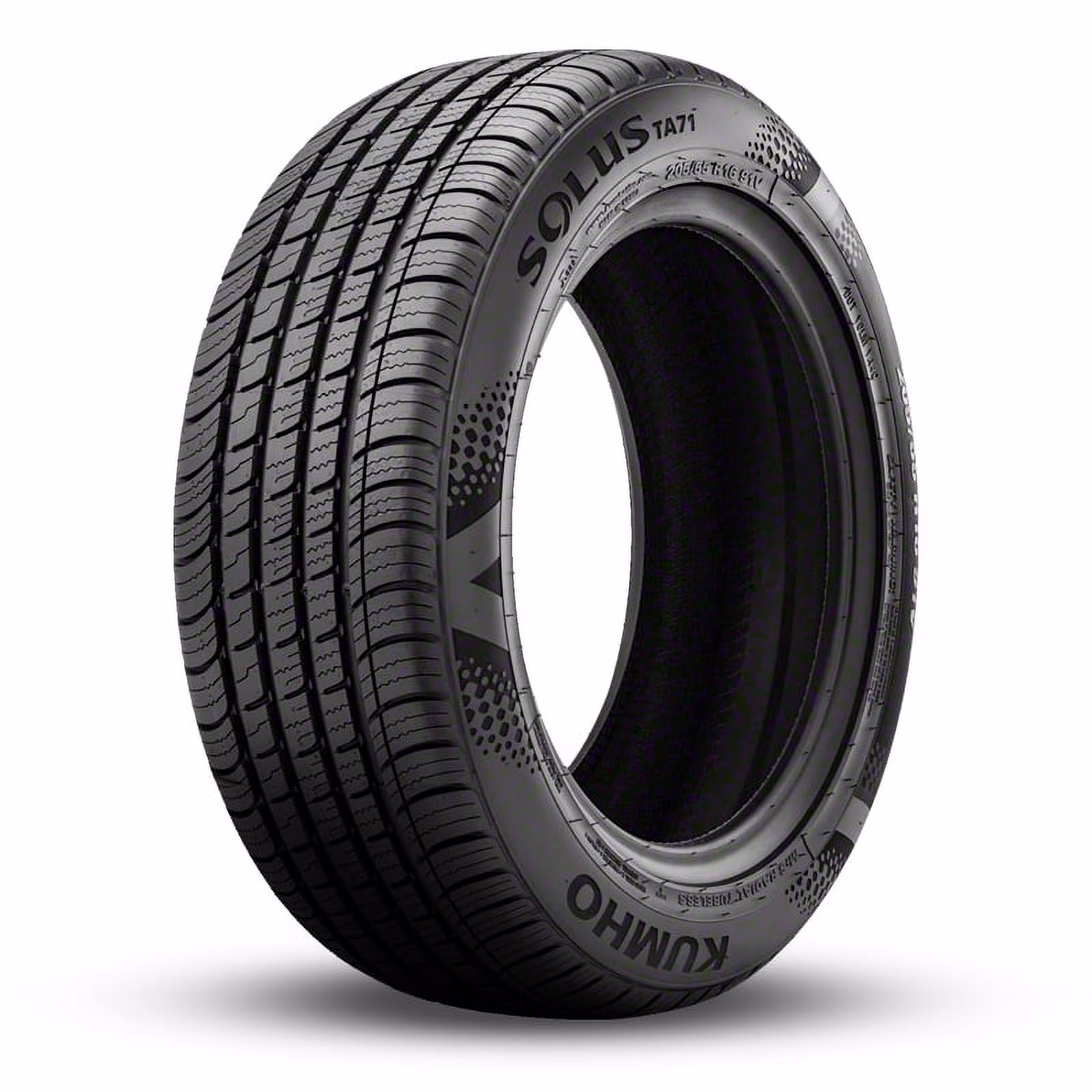 Kumho's Solus TA71 is an all-season tire that's built for use on luxury sedans and features an asymmetrical tread pattern that enhances grip and steering response in dry, wet, and light winter weather conditions. Backed by a 60,000 mile limited manufacturer tread life warranty, the Solus TA71's computer optimized design reduces road noises and vibrations to create a quiet, comfortable ride for drivers and passengers.