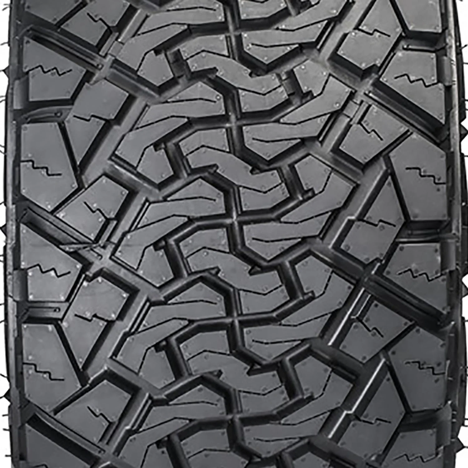 - Aggressive, self cleaning tread pattern allows for consistent traction on and off road by forcing mud, dirt, rocks, water, slush, snow, and other unwanted materials out of the tire