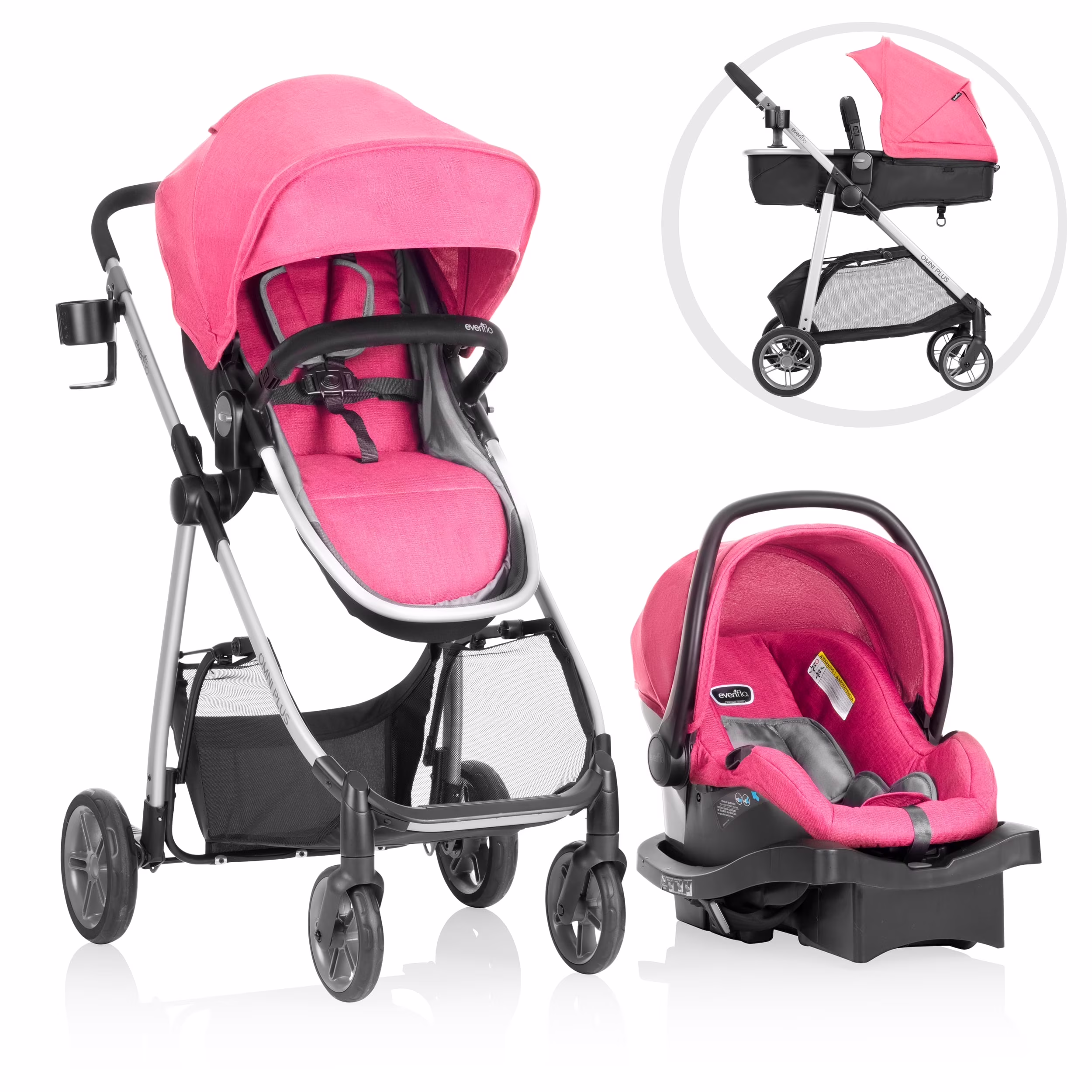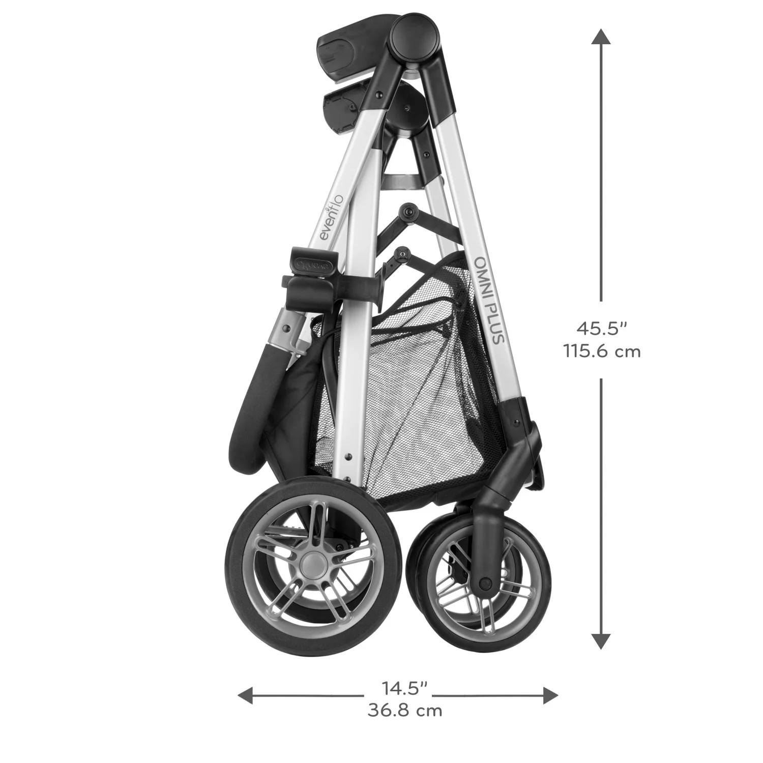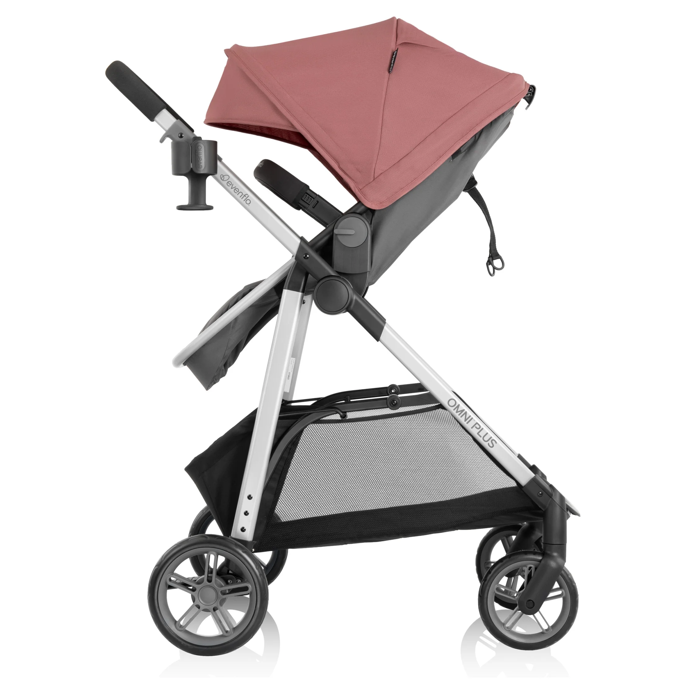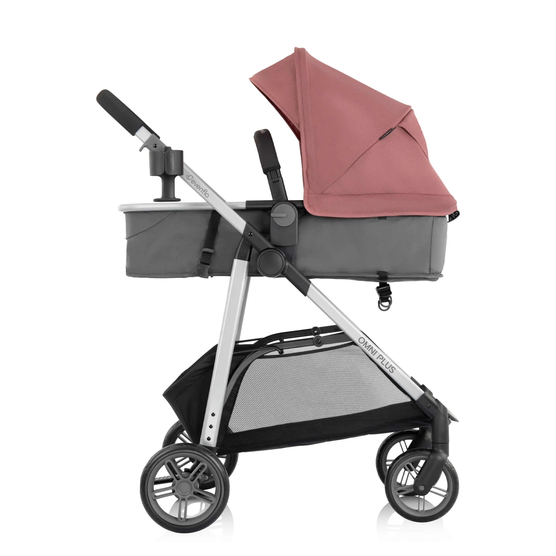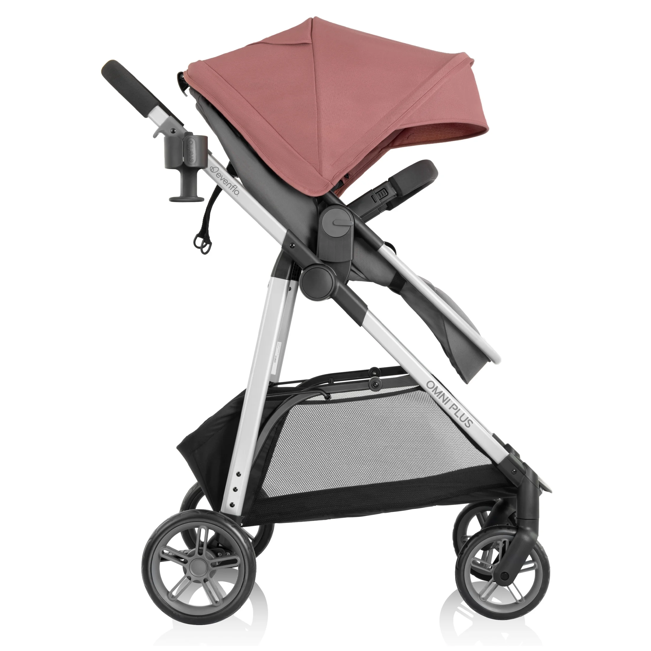- LOOK AT WHAT��S NEW!: New huge storage basket offers you an extra foot of space and holds up to 10 lb of on-the-go essentials. In addition, Omni? Plus is compatible with the Evenflo? Child Snack Tray (sold separately)!