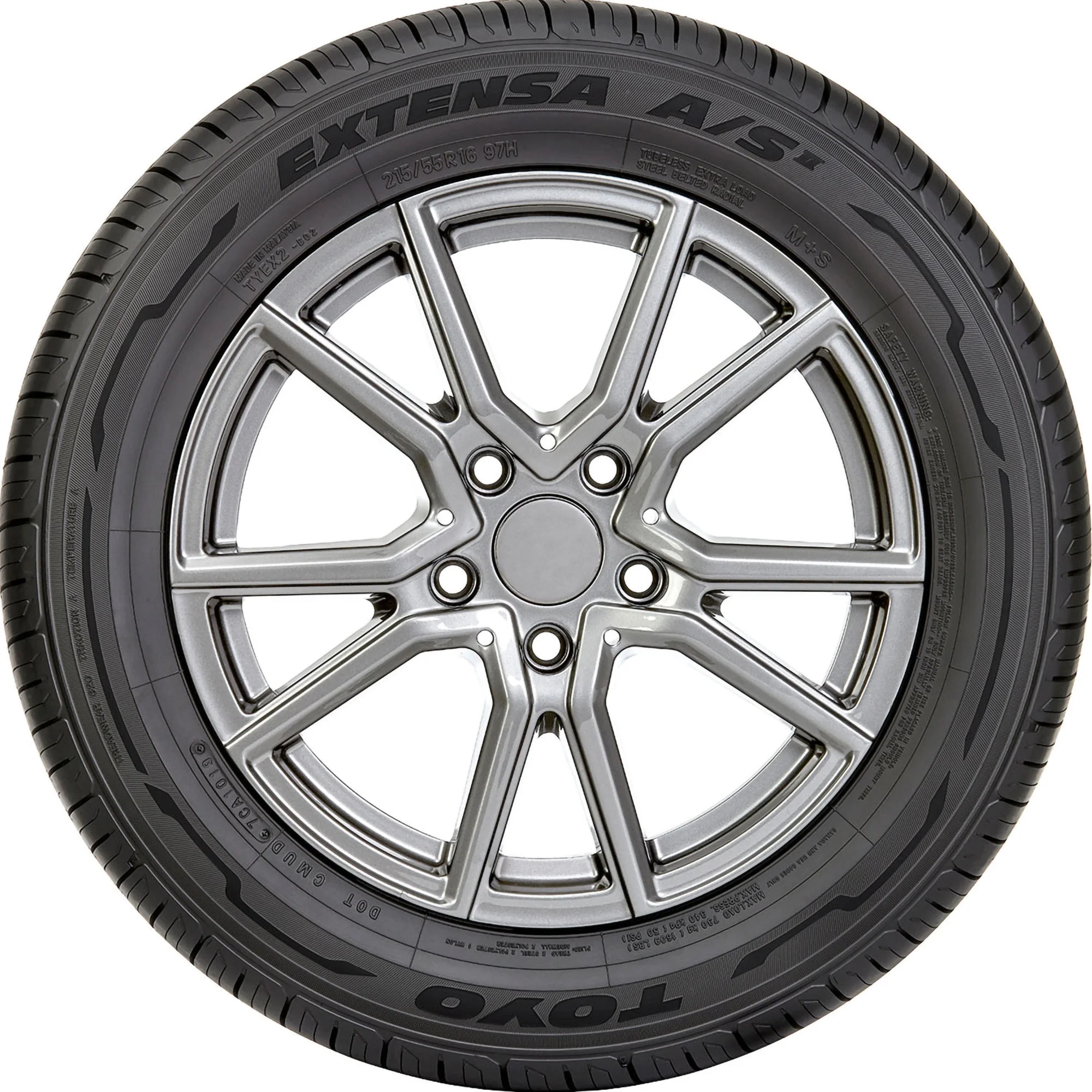 The Extensa A/S II from Toyo is an all-season tire for passenger cars, minivans, SUVs, CUVs, and light trucks. Delivering a long tread life and a comfortable ride, the Extensa A/S II offers better wet braking and handling plus increased fuel efficiency. Additionally, the Extensa A/S II is backed by an up to 75,000 mile limited manufacturer tread life and features multi-wave sipes that fend off uneven wear, increase grip in wet and grip weather, and lower road noises for a quiet ride.
