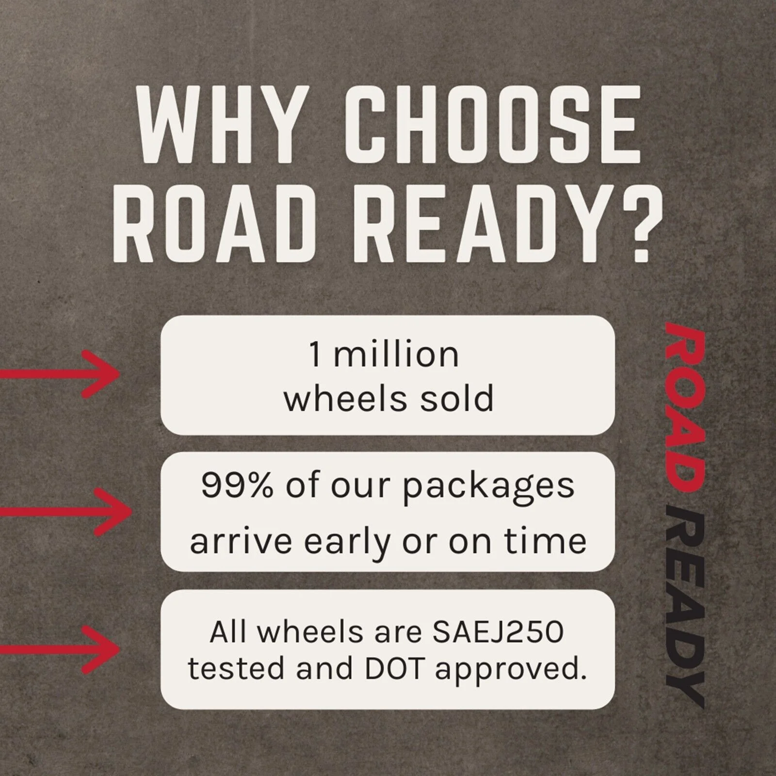 This Road Ready wheels has been thoroughly tested to ensure quality, durability, and toughness. This wheel has passed all of the necessary safety requirements and has been constructed to be a direct OEM replacement. All of our product here at Road Ready is fully compatible with your factory equipment including but not limited to: wheel covers, TPMS sensors, hubcaps, lug nuts, and tires. Serving over 30,000 customers in all 50 states, we are considered one of the top wheel providers in the country. Feel safe when buying your product, shop Road Ready today!