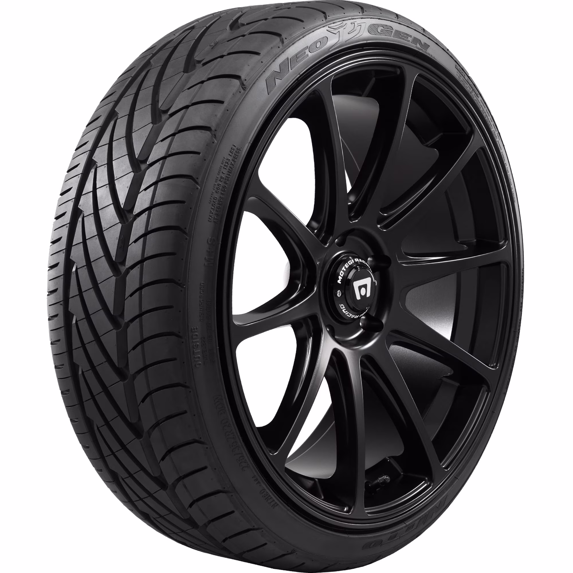The Neo Gen tire by Nitto delivers high performance on dry and wet roads throughout the year for passenger cars. While its outside tread blocks maximize the rubber contact patch on the road to boost cornering performance, the Neo Gen's inner shoulder blocks reduce uneven wear and enhance stability. Additionally, the deep tread grooves on the Neo Gen help remove water on wet roads to boost traction.