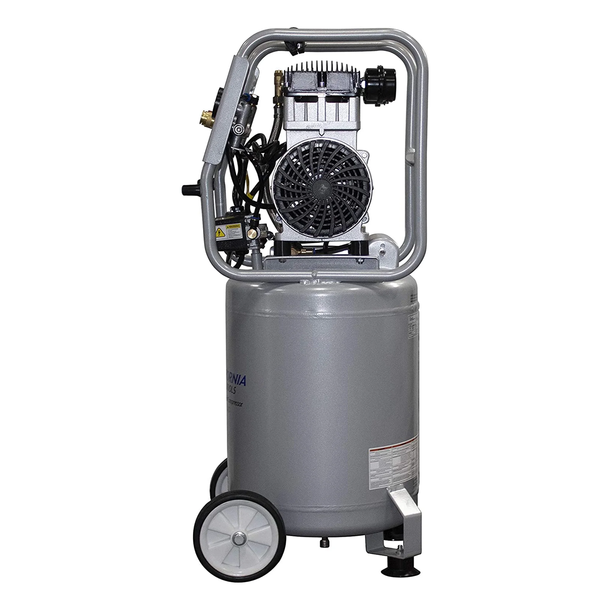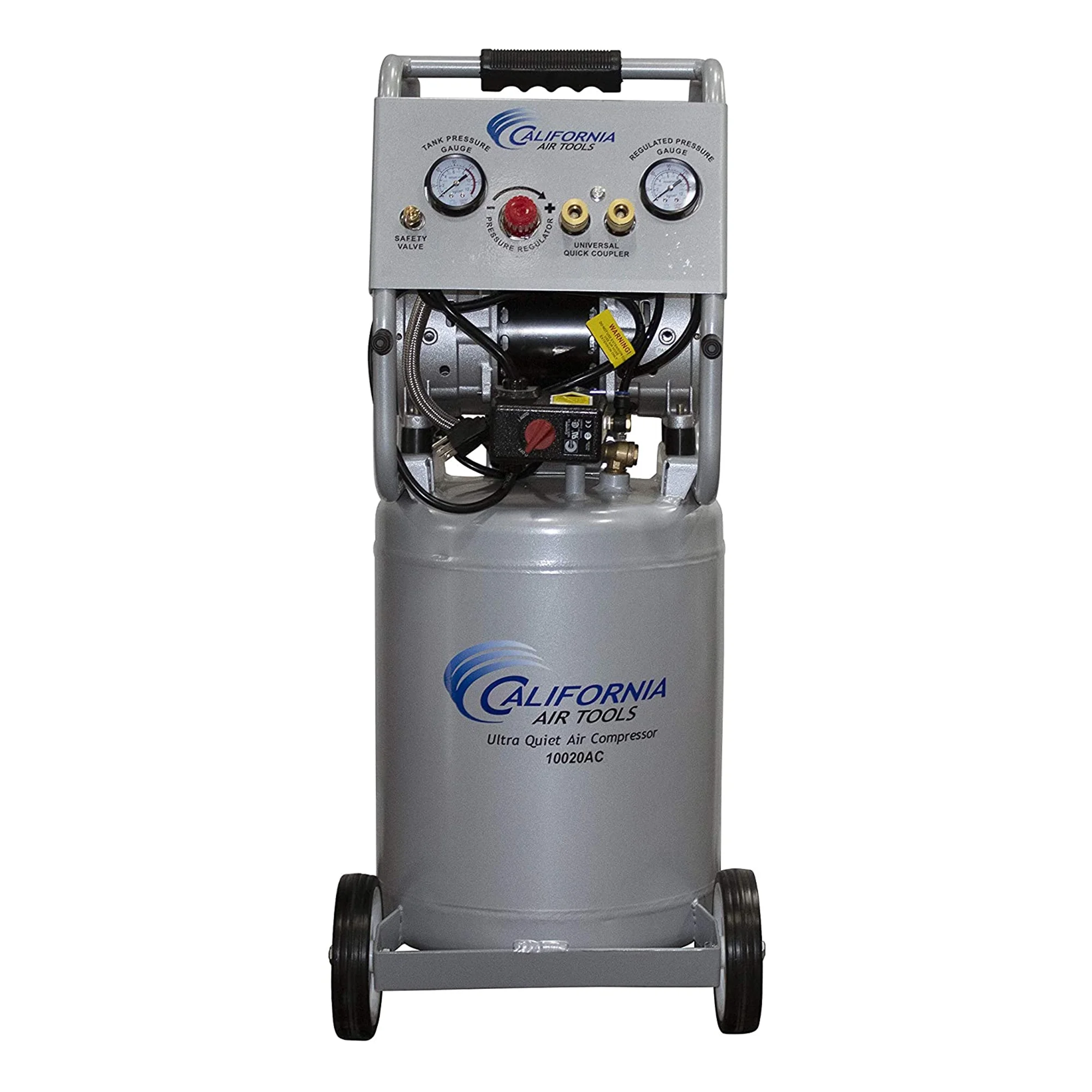 - The large 10-gallon aluminum air tank sits on wheels, making it very easy to move around the job site, shop, or garage