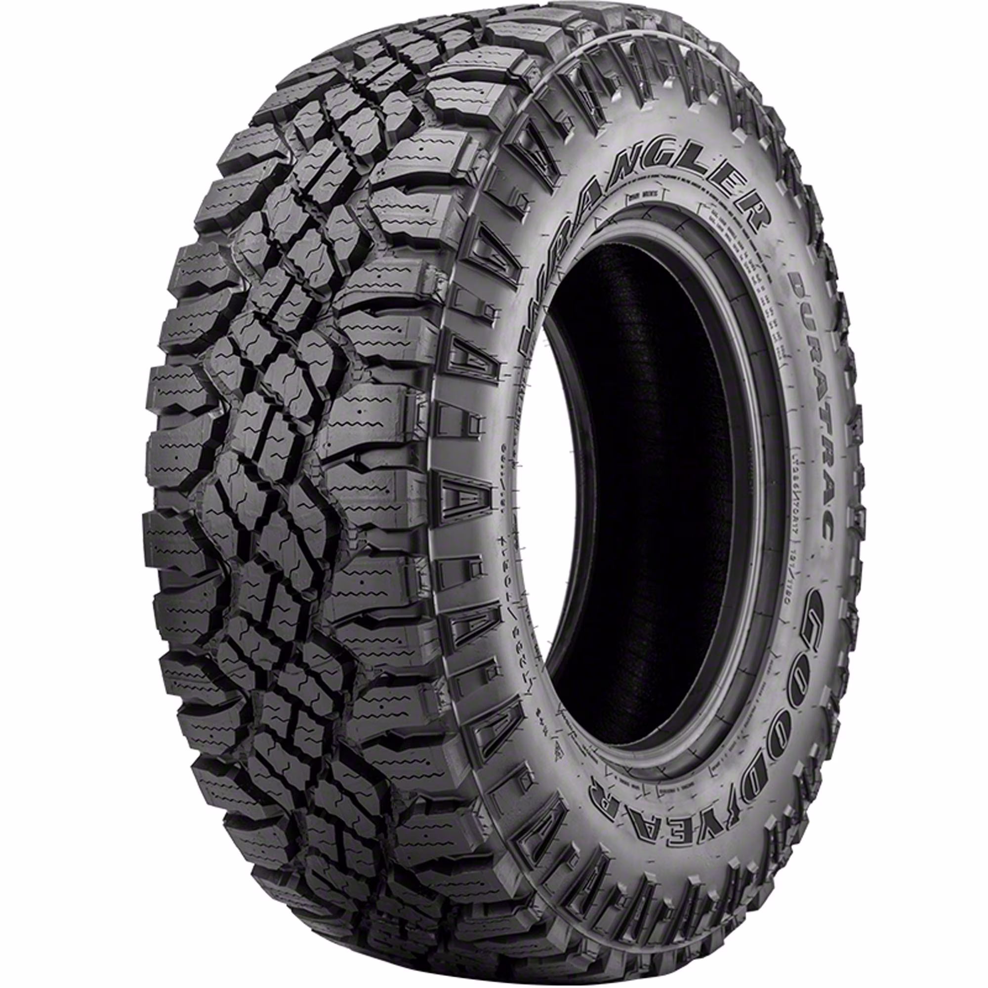 The Goodyear Wrangler DuraTrac is an off-of-the road tire specially designed for drivers who want yea-round traction, reliable handling, and durability. It features the Tractive Groove technology composed of highly angled center tread blocks and zigzag microgrooves which helps improve traction in deep mud and snow. To complement this are the thousands of biting edges that strengthen the grip of the tire on the road. The tire's durability is further enhanced by the sidewall's rim protector which prevents unexpected elements on the road from impacting the shield wheels. For drivers who frequently travel on deep mud and snow, they can have the optional studs for the added traction. The Goodyear Wrangler DuraTrac is branded with the Mountain/Snowflake symbol which means it has passed the auto industry's severe snow requirements.